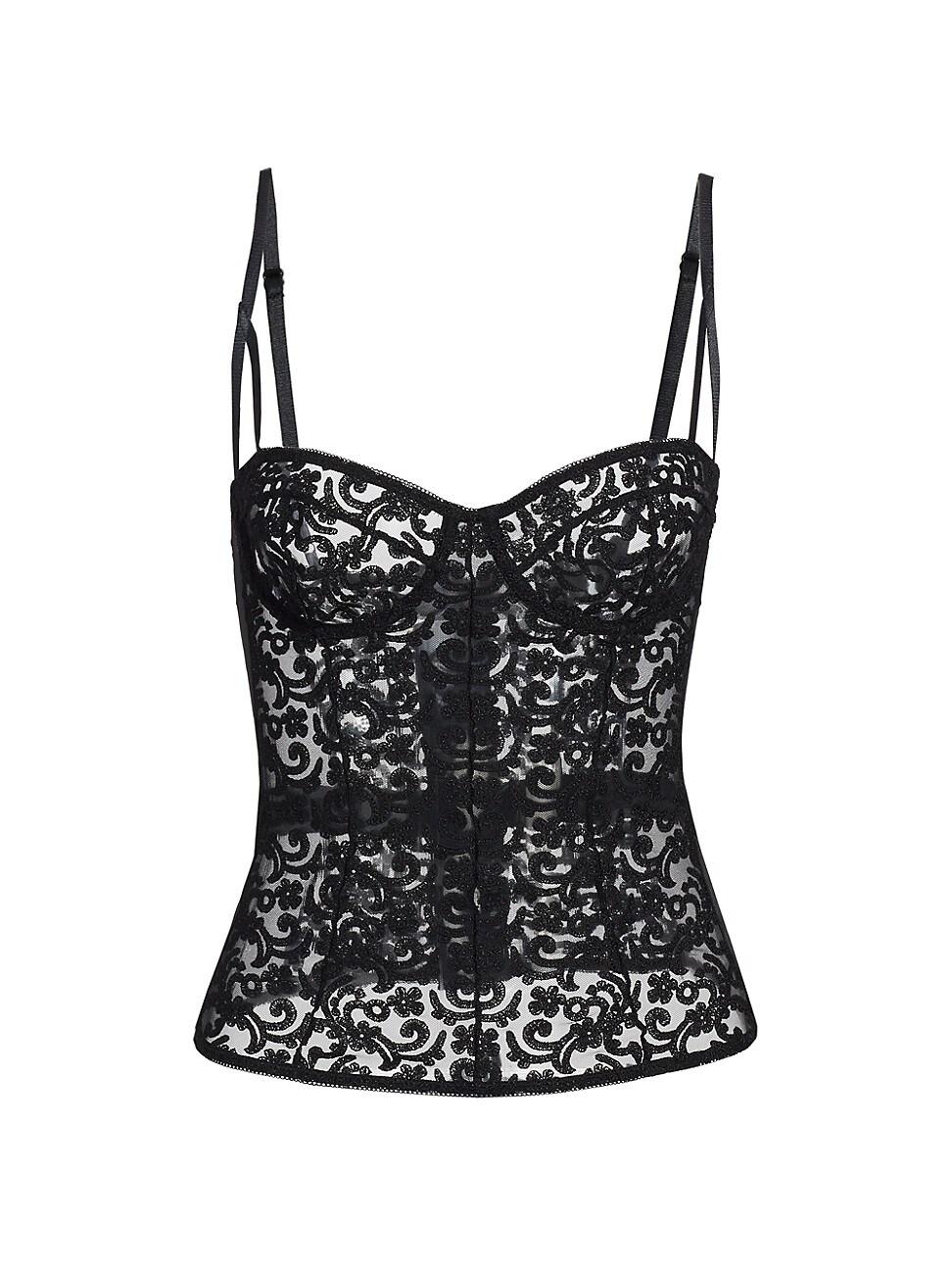 From the Lola Collection. Crafted in Italy, Kiki de Montparnasses bustier flaunts a structured underwire design paired with an intricate lace body. Sweetheart neck Adjustable straps Underwire Back hook-and-eye closure 84% nylon/16% elastane Embroidery: 50% polyester/50% nylon Trim: 90% silk/10% spandex Dry clean Made in Italy SIZE & FIT Model measurements: 510 tall Model is wearing a US size Small. Lingerie - Designer Foundations > Kiki De Montparnasse > Saks Fifth Avenue > Barneys. Kiki de Montparnasse. Color: Ivory. Size: Large.