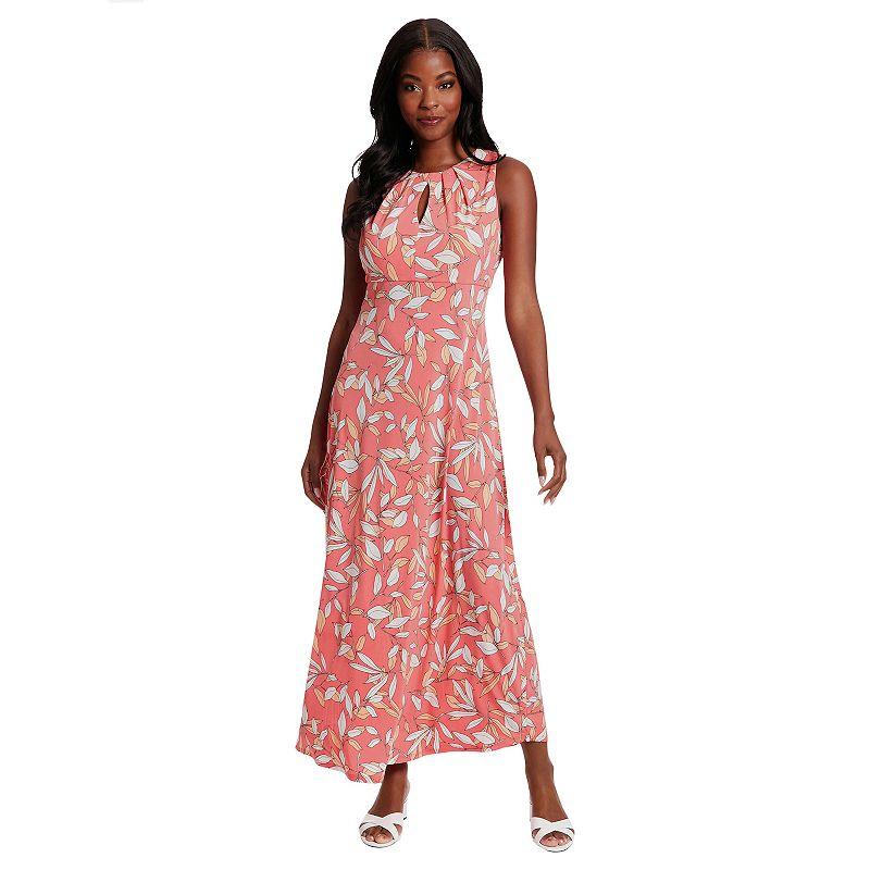 Give your look an elegant upgrade with this Womens London Times Falling Leaves Print Keyhole Neck Pleated Maxi Dress.Click on this WOMENS GUIDE to find the perfect fit and more! Give your look an elegant upgrade with this Womens London Times Falling Leaves Print Keyhole Neck Pleated Maxi Dress.Click on this WOMENS GUIDE to find the perfect fit and more! FEATURES Keyhole jewelneck Sleeveless Zipper back closure Partially lined Straight hemFIT & SIZING A-line silhouette Fitted bodice with flared skirt 54-in. length from shoulder to hem Maxi length hits at the ankleFABRIC & CARE Polyester, spandex Lining: polyester Soft and slightly stretchy matte jersey construction Machine wash and tumble dry low,Machine wash Imported Size: 14. Color: Black Blush. Gender: female. Age Group: adult.
