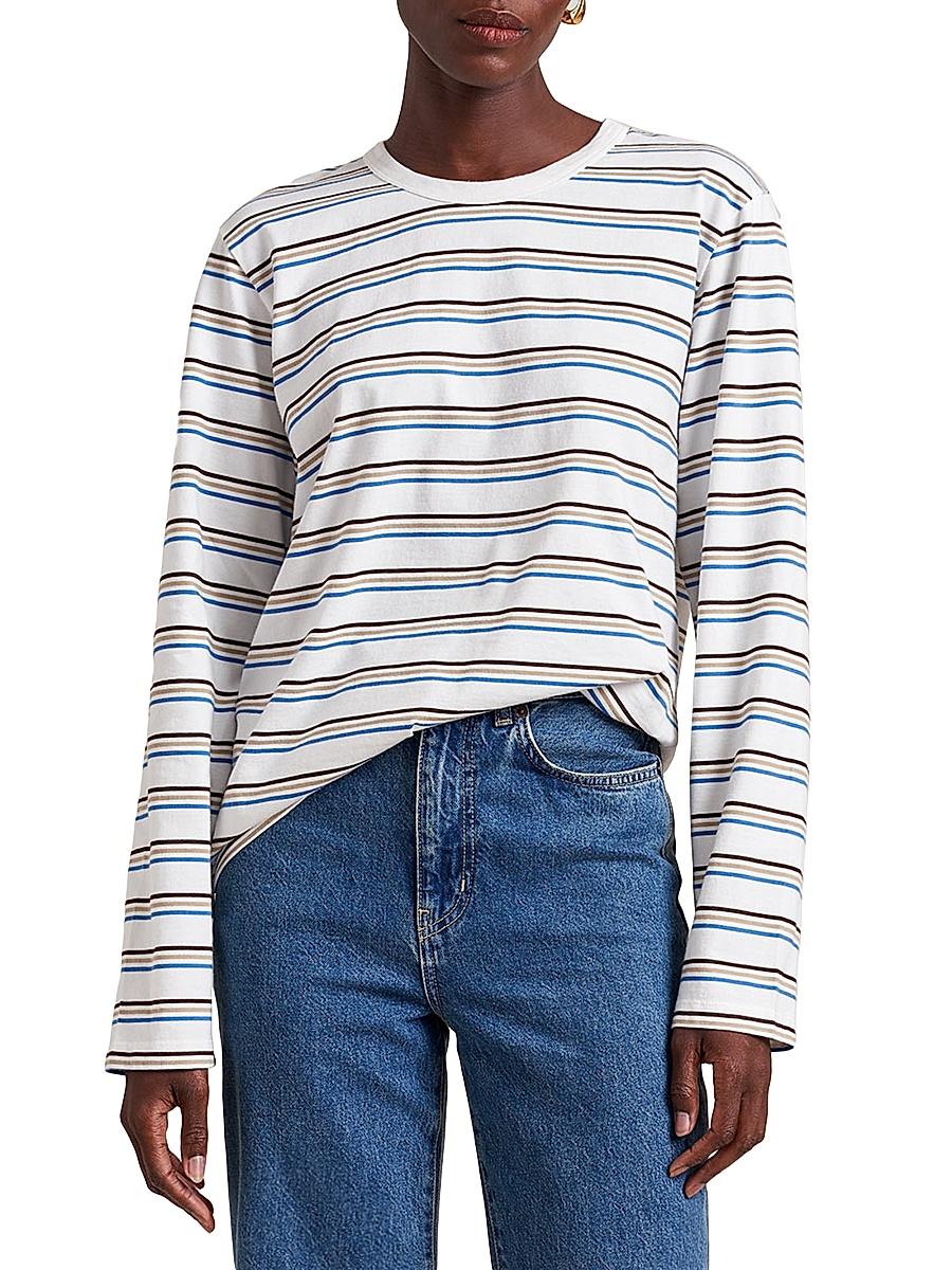 Better than stealing your boyfriends, La Ligne made a super soft cotton version in a looser, easy fit to meant to feel like it has always been in your life. 100% cotton Oversized, boyfriend fit Self neck trim with double needle stitch Interior binding at neck and shoulder seams Medium weight cotton jersey Machine wash Imported SIZE Model is wearing US size small Model measurements: 59 tall. Lsd Rtw - Womens Rtw Lsd Mp > La Ligne > Saks Fifth Avenue. La Ligne. Color: Ivory Multi. Size: XS.