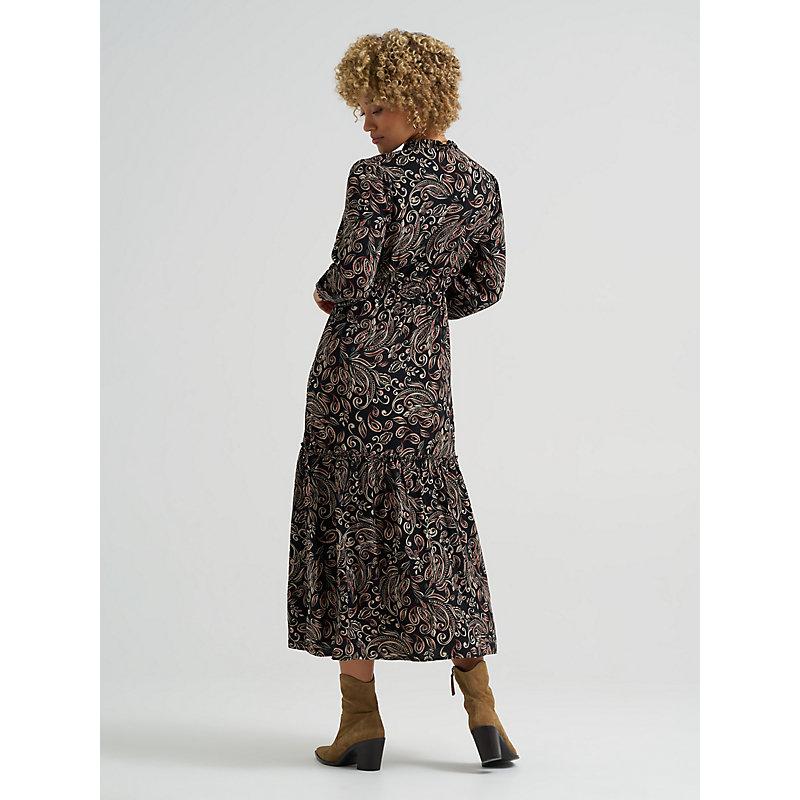 Dress up your florals with this vintage favorite. This ‘70s inspired dress comes with a laced peasant top, a maxi-style tiered skirt, oversized sleeves that finish in a cuff at the wrist. Blooming with flowers from neck to skirt, this dress knows how to keep things groovy. 100% Polyester. Black. L.