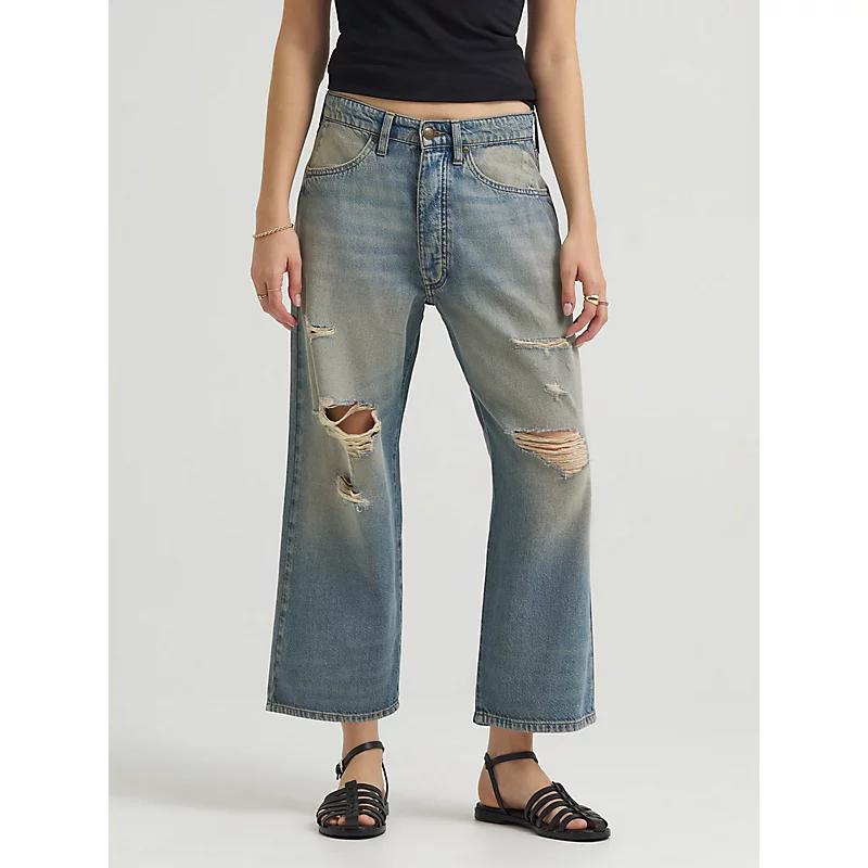 Redefine your denim with this fresh take on the wide-leg trend. These unique button-fly jeans feature a dropped crotch and low-slung waist that invokes the playful silhouettes of the ‘80s. With a mid-rise waist and loose fit, they’re designed to be a stand out piece in any wardrobe. 60% Cotton, 31% Lyocell. Distressed Western Blues DX. 33 W / 25 Inches (M).