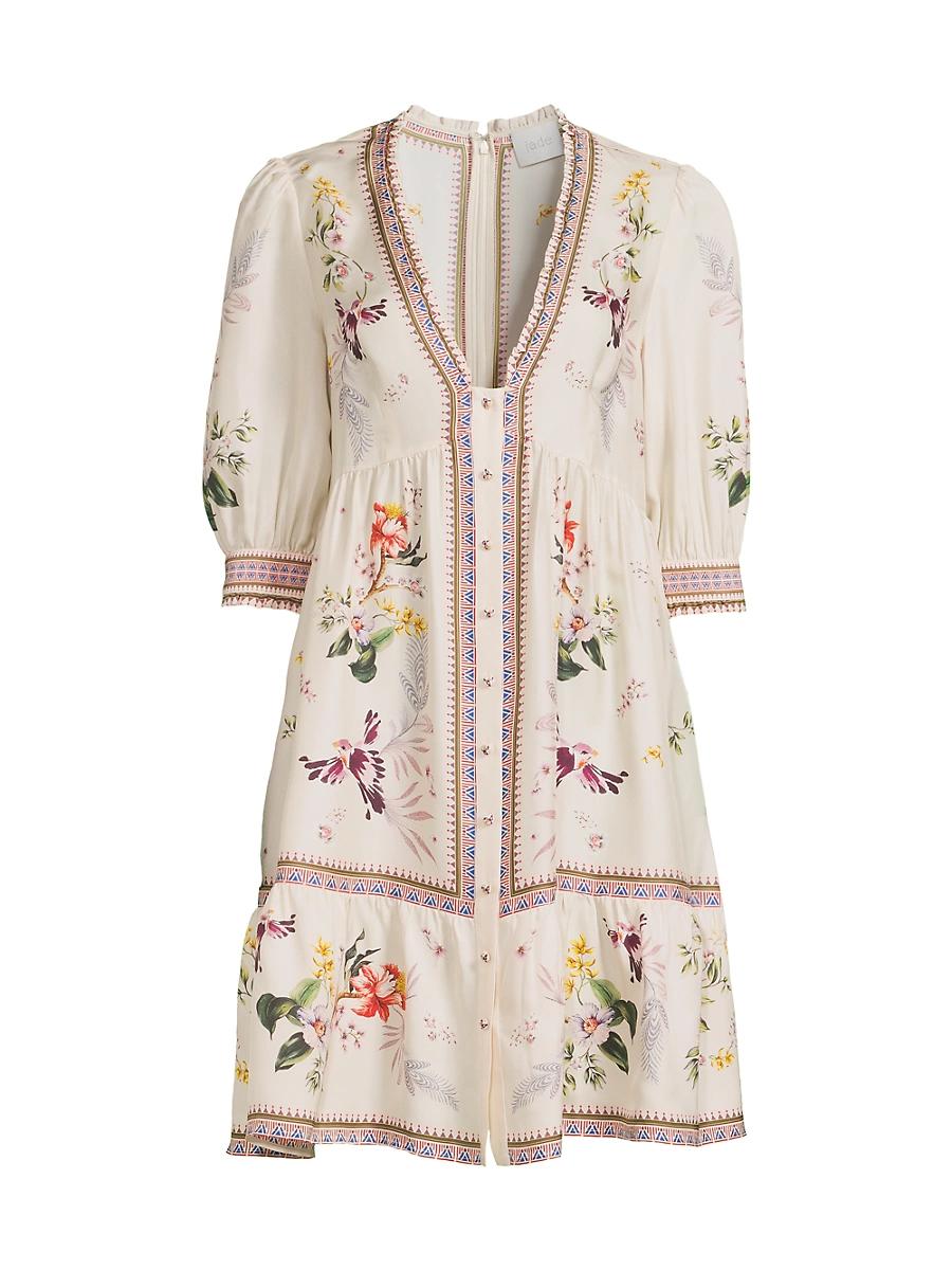 Finished in a bright floral print, Johnny Was Loren dress features a V-neck, short sleeves, and border trim. V-neck Short sleeves Pulls over 70% ramie/30% silk Dry clean Imported SIZE & FIT About 38 from shoulder to hem Model measurements: 510 tall Model is wearing a US size Small ABOUT THE BRAND Embracing the ease of a West Coast lifestyle, Johnny Was takes a bohemian mindset to a new level in romantic flowing dresses and tops. The brands signatures include floral prints, embroidery, artisan-inspired stitches and embellishments like beading and tassels. Modern Collections - Johnny Was > Johnny Was > Saks Fifth Avenue > Barneys. Johnny Was. Color: Willah. Size: Small.