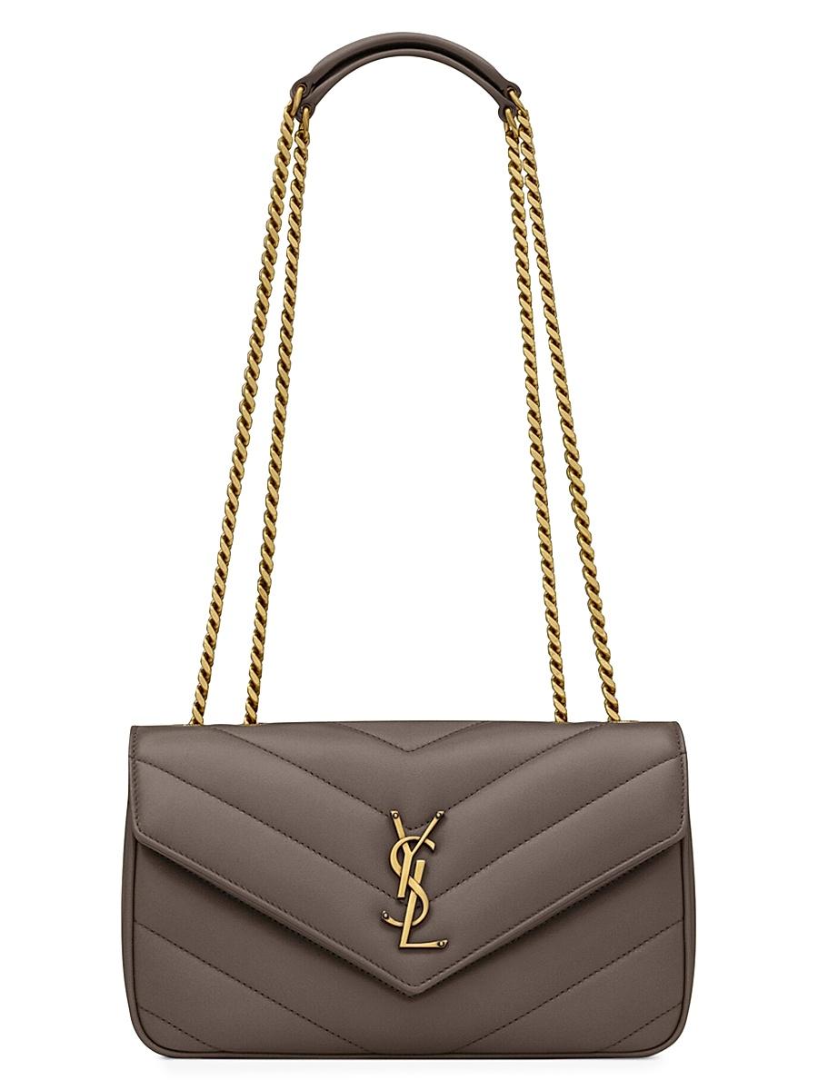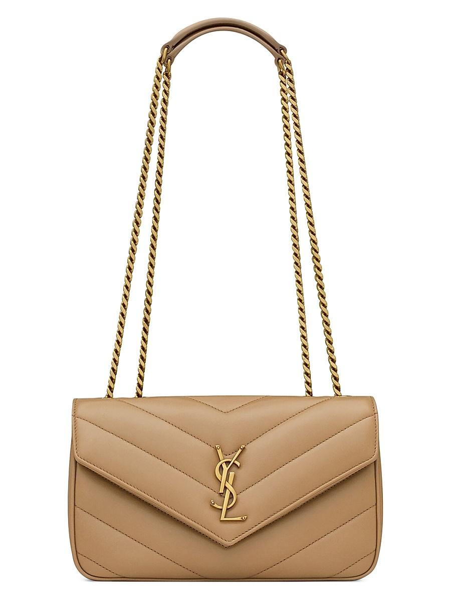 Chain bag in soft lambskin with chevron-quilted topstitching. This bag features a removable leather pouch and pocket mirror. Finished with a sliding chain strap, the bag may be worn on the shoulder or crossbody. Grosgrain lining Dimensions: 24 x 14 x 6 cm / 9.4 x 5.5 x 2.4 Made in Italy. Lsd Handbags - Saint Laurent > Saint Laurent > Saks Fifth Avenue. Saint Laurent. Color: Natural Tan.