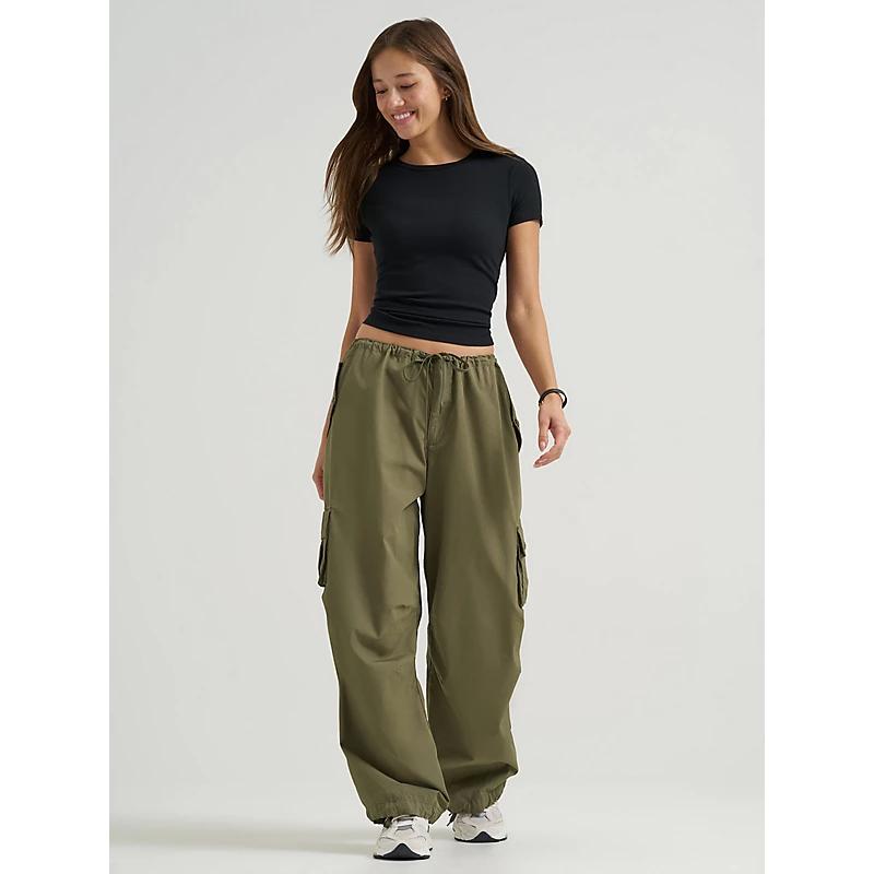 Nothing keeps things comfortable like a parachute pant. This pant comes with a drawstring closure at the waist and leg, and plenty of pocket space for anything you could need, including cargo pockets at the side. Outfitted with a low-rise waist and spun from 100% cotton, they always bring the perfect fit. 100% Cotton. Mercantile Green. 26 W / 30 Inches.