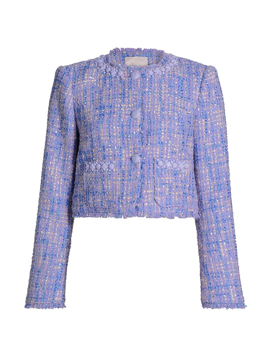 This Lucie Boucle Audette jacket from Cinq Sept features a collarless design punctuated with tonal buttons and crystal embellishments. Crewneck Long sleeves, button cuffs Front patch pockets Button-front closure 88% polyester/12% acrylic Dry clean Imported SIZE & FIT About 18.4 from shoulder to hem Model measurements: 510 tall Model is wearing a US size 4 ABOUT THE BRAND Inspired by the radiant, magical hours between 5 and 7 PM-which is what the labels French name translates to-founder Jane Siskin designs sophisticated, feminine pieces for both workweek and the weekend. The designers silhouettes also play with volume and eye-catching trimmings-perfect for cocktails or a special night out. Contemporary Sportswear - Cinq A Sept > Cinq Sept > Saks Fifth Avenue > Barneys. Cinq Sept. Color: Honey Lavender Multi. Size: 12.