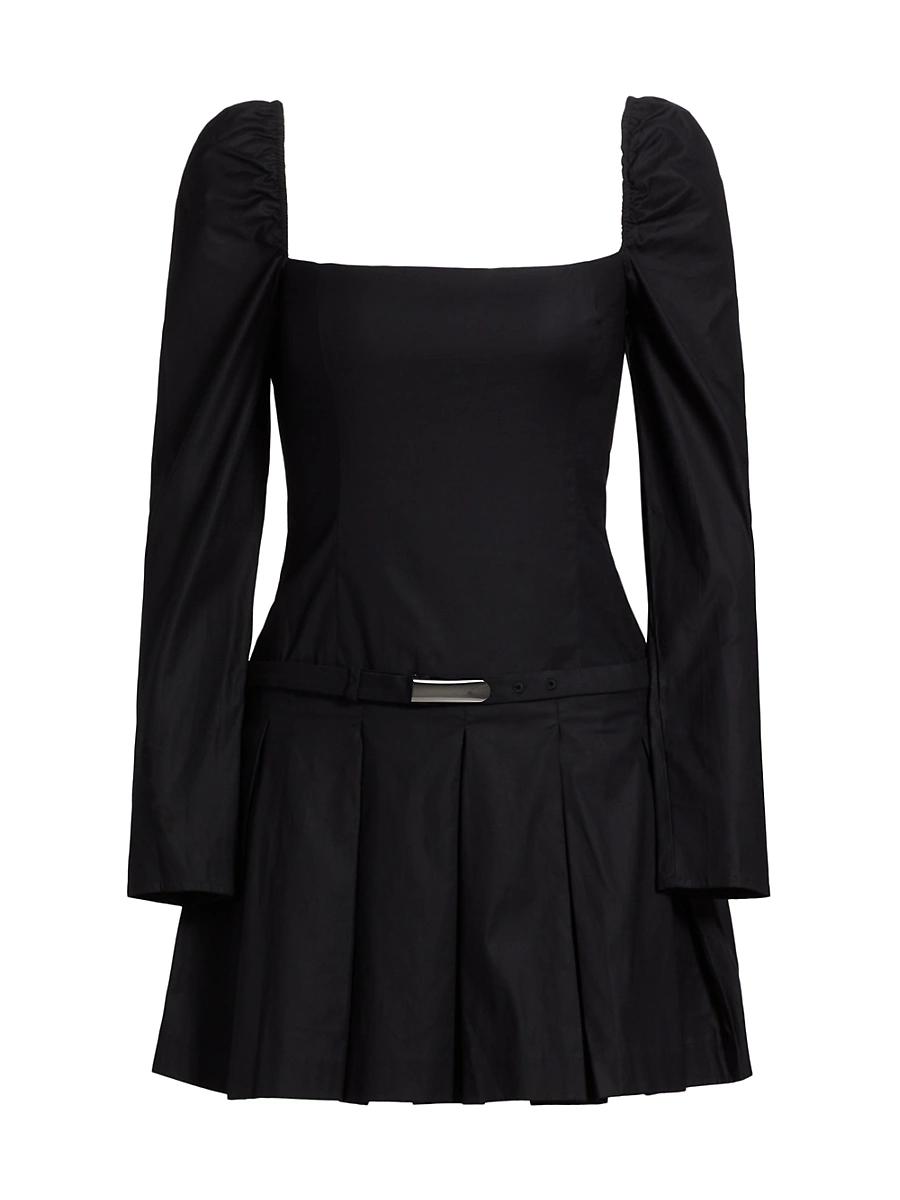 Crafted of stretch cotton poplin, Reformations Luella long-sleeve minidress is styled with a square neck and pleated skirt. Square neck Elasticized shoulders Long sleeves Drop waist Belted Smocked back Back zip closure 98% organic cotton/2% spandex Dry clean Imported SIZE & FIT About 24 from shoulder to hem Model measurements: 510 tall Model is wearing a US size 4. Contemporary Sportswear - Contemporary Collections > Reformation > Saks Fifth Avenue > Barneys. Reformation. Color: Black. Size: 6.