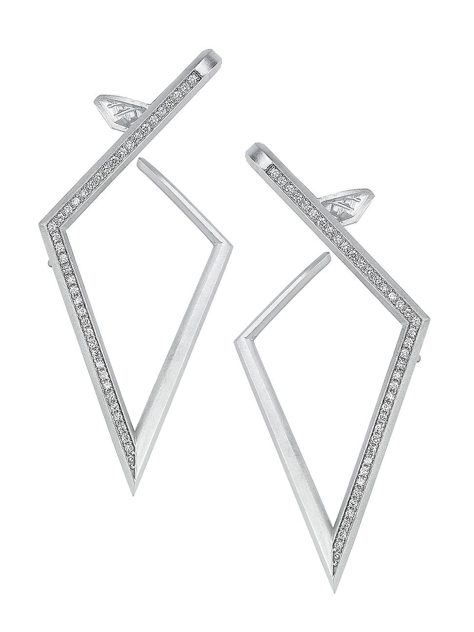From the Luminescence Collection. Designed with an open wraparound silhouette, Aschers Trident earrings are crafted from black rhodium-plate with glittering diamond pav. Diamonds, 0.68 tcw Diamond color, E-F Black rhodium-plate Ear post Imported SIZE Length, about 2.25. Fashion Jewelry - Semi Prec Coll C > Ascher > Saks Fifth Avenue > Barneys. Ascher. Color: White Gold.