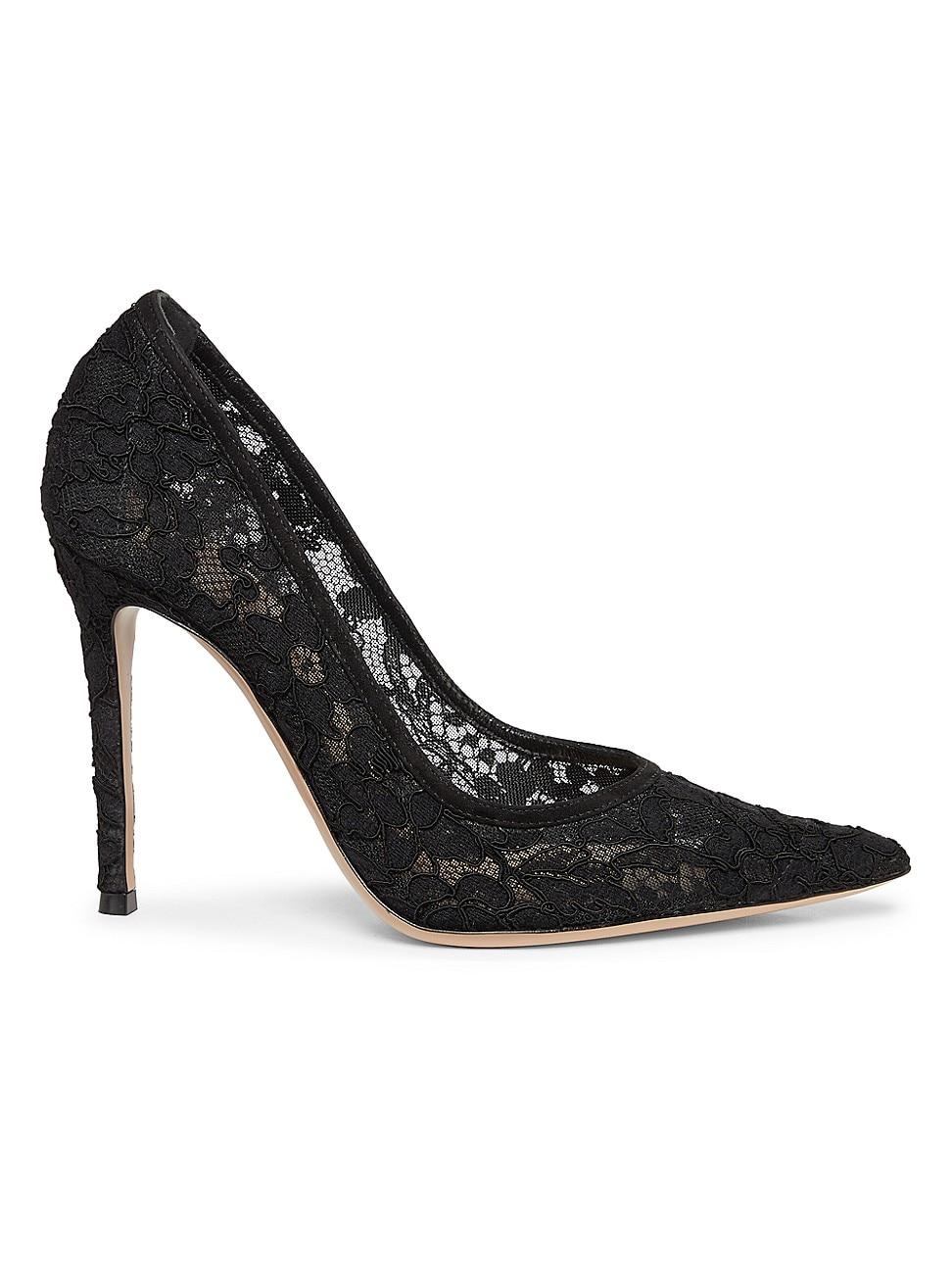 Gianvito Rossis Lyon Rete Camoscio lace pumps are crafted in Italy and sit on a 105mm heel. Point toe Slips on Textile/suede upper Acetate lining Leather sole Made in Italy SIZE Heel: about 4.13 (105mm) ABOUT THE BRAND The son of famed Italian shoe designer Sergio Rossi, Gianvito Rossi made his own debut in 2006 at Milan Fashion Week, causing major buzz around his clean, masterfully crafted designs. Today, Rossi continues his devotion to minimalist, comfortable shoes in streamlined shapes, all exquisitely made in Italy. Womens Shoes - Gianvito Rossi Wmn Shoes > Gianvito Rossi > Saks Fifth Avenue > Barneys. Gianvito Rossi. Color: Black. Size: 12.