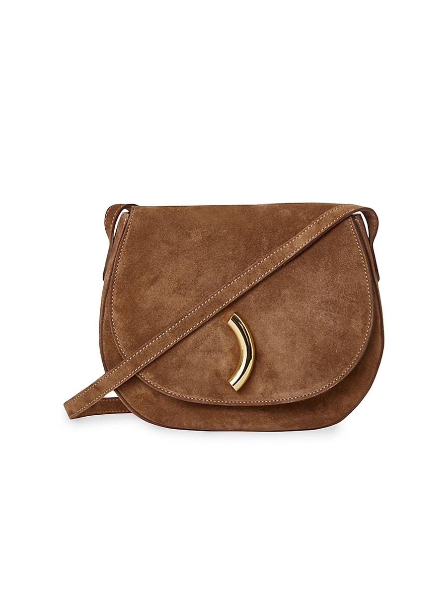 Little Liffners Maccheroni saddle bag, a vintage-inspired crossbody bag crafted of suede, is adorned with the brands signature maccheroni hardware. Adjustable strap Interior: one slip pocket Dust bag Flap with magnetic closure Suede Lining: Cotton Made in Italy SIZE About 9W x 7.5H x 2.4D Adjustable strap: about 17.3 drop. Handbags - Collection Handbags > Little Liffner > Saks Fifth Avenue > Barneys. Little Liffner. Color: Brown.
