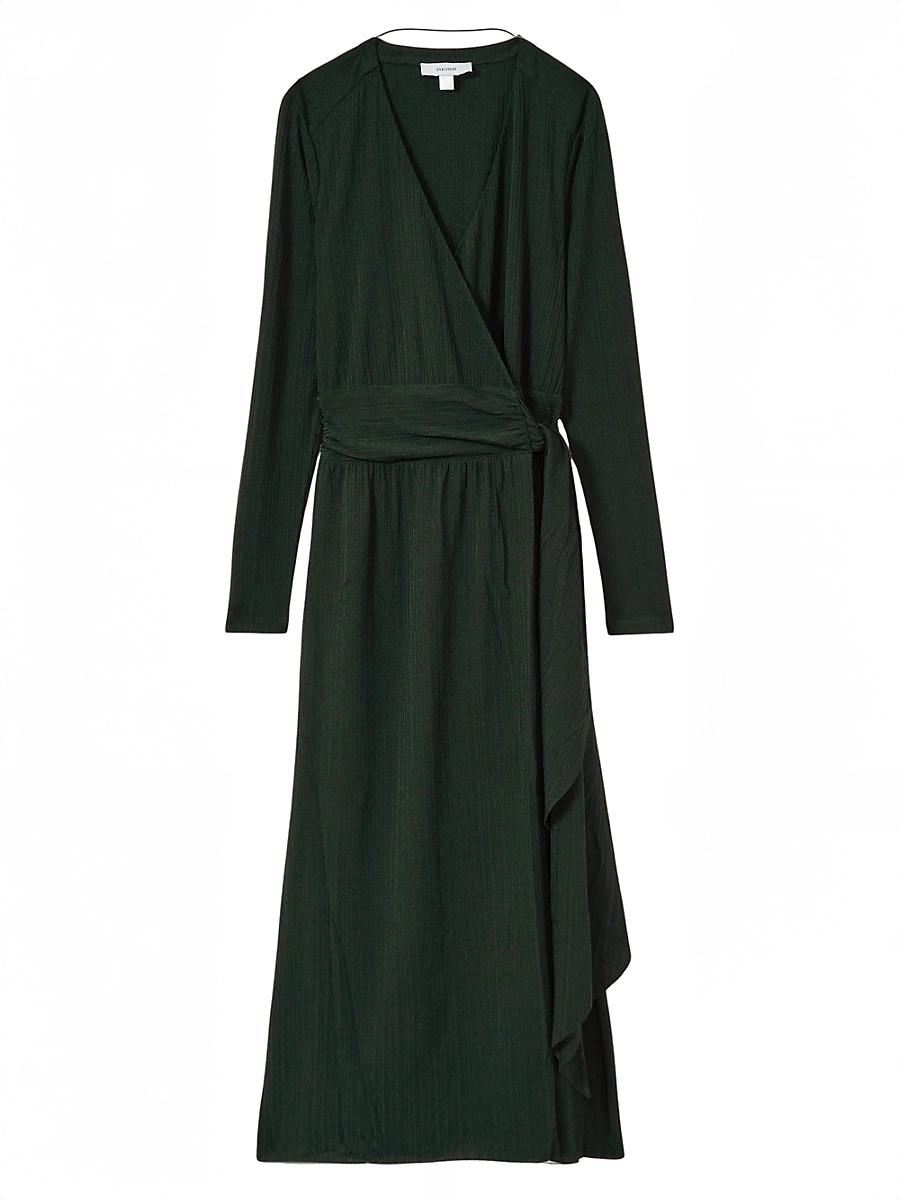 Crafted of soft jersey, Reiss Madeline midi-dress showcases a flattering wrap waist and a surplice V-neck. Made with recycled polyester Surplice V-neck Long sleeves Wrap waist, self-tie closure 94% recycled polyester/6% elastane Machine wash Imported SIZE & FIT About 50 from shoulder to hem Model measurements: 510 tall Model is wearing a US size 4. Modern Collections - Modern Trend > Reiss > Saks Fifth Avenue > Barneys. Reiss. Color: Green. Size: 12.