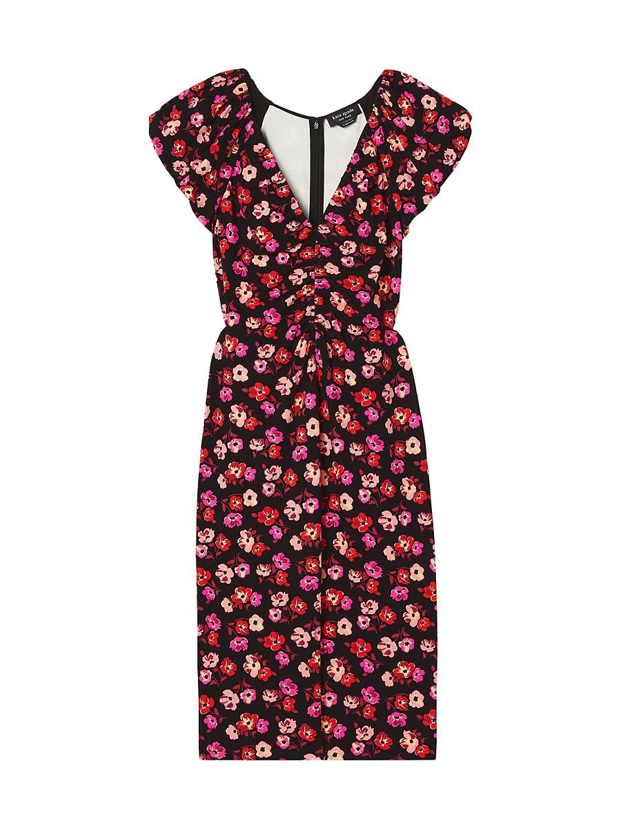 From the Mainline Collection. Designed with a floral print, this Fall Poppies midi-dress from kate spade new york is styled with a V-neck, cap sleeves, and a ruched bodice. V-neck Cap sleeves Ruched bodice Back zip closure 85% viscose/10% polyamide/5% elastane Dry clean Imported SIZE & FIT About 41.5 from shoulder to hem Model measurements: 510 tall Model is wearing a US size Small. Modern Collections - Branded Separates > Kate Spade New York > Saks Fifth Avenue > Barneys. kate spade new york. Color: Black. Size: Medium.