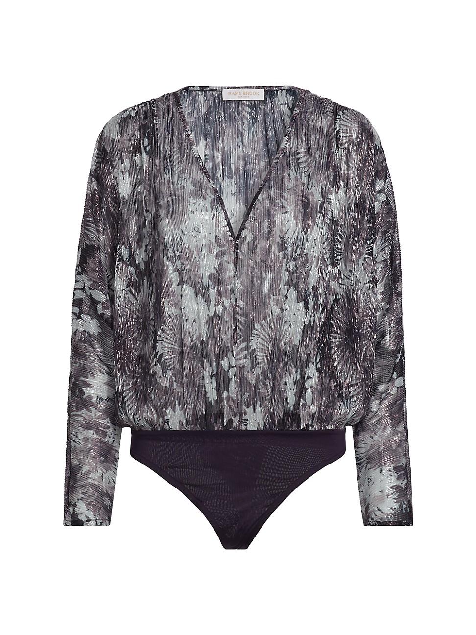 The Margot bodysuit from Ramy Brook features a metallic floral print, V-neck and billowing blouson sleeves. V-neck Long blouson sleeves Snap closure 50% polyester/50% metallic fibers Lining: 100% polyester Machine wash Imported SIZE & FIT About 27 from shoulder to hem Model measurements: 510 tall Model is wearing a US size Small. Contemporary Sportswear - Contemporary Collections > Ramy Brook > Saks Fifth Avenue > Barneys. Ramy Brook. Color: Dove Grey Floral. Size: Large.