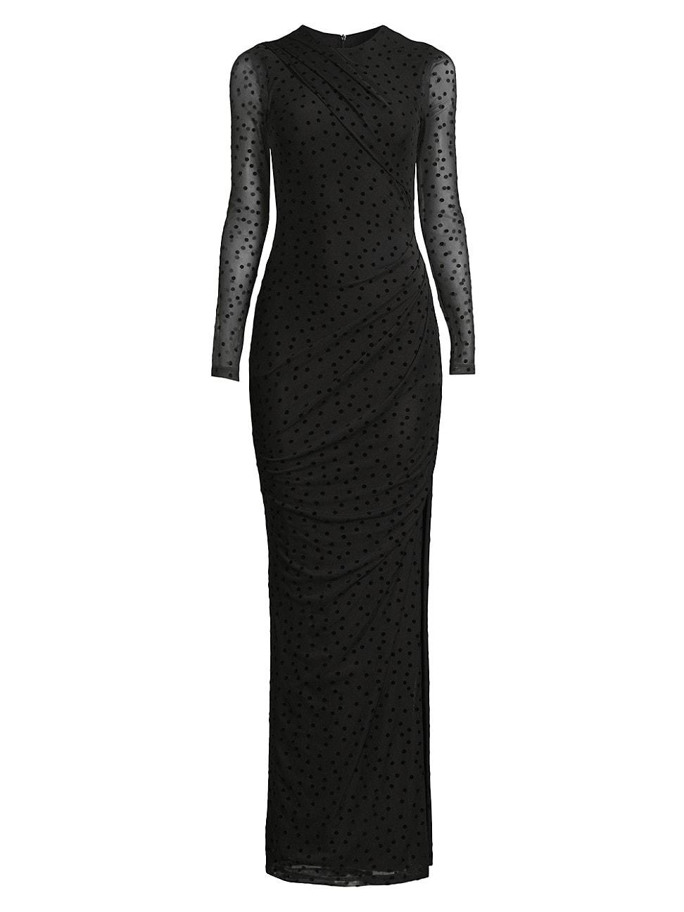 Crafted of power mesh, Black Halos maxi dress showcases a shadow polka-dot print and sheer long sleeves. Slight gathering completes the look. Jewel neck Long sleeves Back-zip closure 90% polyamide/10% spandex Lining: 92% polyamide/8% elastane Dry clean Made in USA of Imported fabric SIZE & FIT About 62 from shoulder to hem Model measurements: 510 tall Model is wearing a US size 4. Dress Collections - Contemporary Evening > Black Halo > Saks Fifth Avenue > Barneys. Black Halo. Color: Dashing Dots. Size: 12.