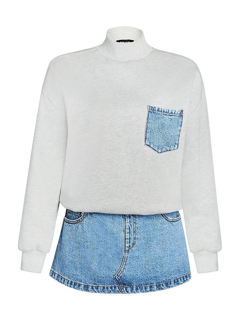 Mini dress with denim skirt and terry sweatshirt top with denim pocket detail. Denim: 100% Cotton, Terry: 55% Polyester, 45% Cotton Model is 510 wearing size S Imported. Lsd Rtw - Womens Rtw Lsd Mp > Ser.o.ya > Saks Fifth Avenue > Barneys. Ser.o.ya. Color: River. Size: Small.
