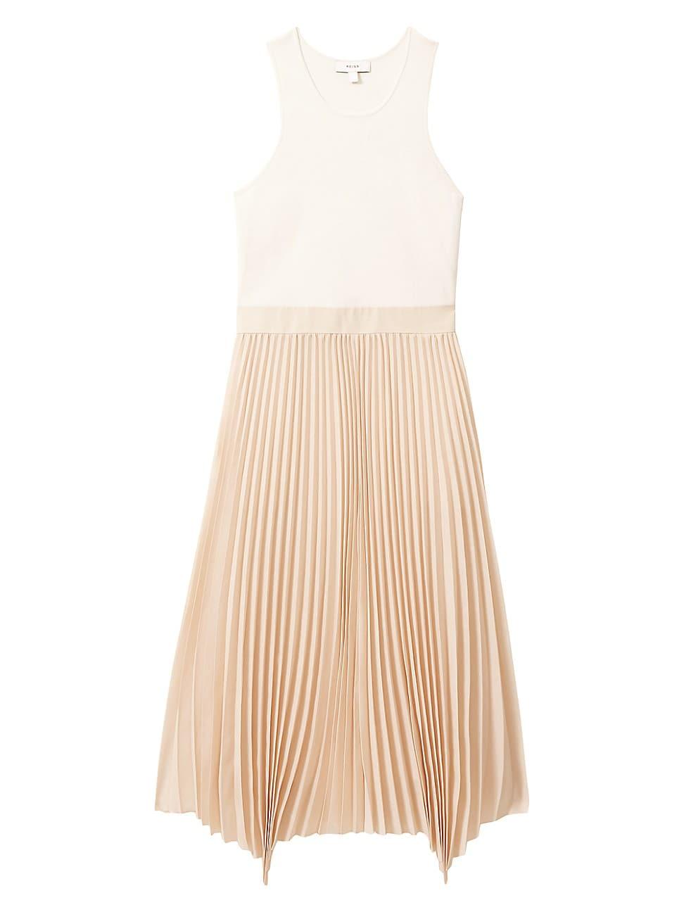 Reiss Marnie dress features a stretch ribbed bodice atop a contrast pleated skirt with a swingy asymmetric hem. Scoopneck Shoulder straps Banded drop waist Pleated skirt Asymmetric hem Pulls over 52% polyamide/44% viscose/4% elastane Contrast: 100% polyester Lining: 100% polyester Dry clean Imported SIZE & FIT About 55 from shoulder to hem Model measurements: 510 tall Model is wearing a US size Small. Modern Collections - Modern Trend > Reiss > Saks Fifth Avenue > Barneys. Reiss. Color: Ivory. Size: Small.