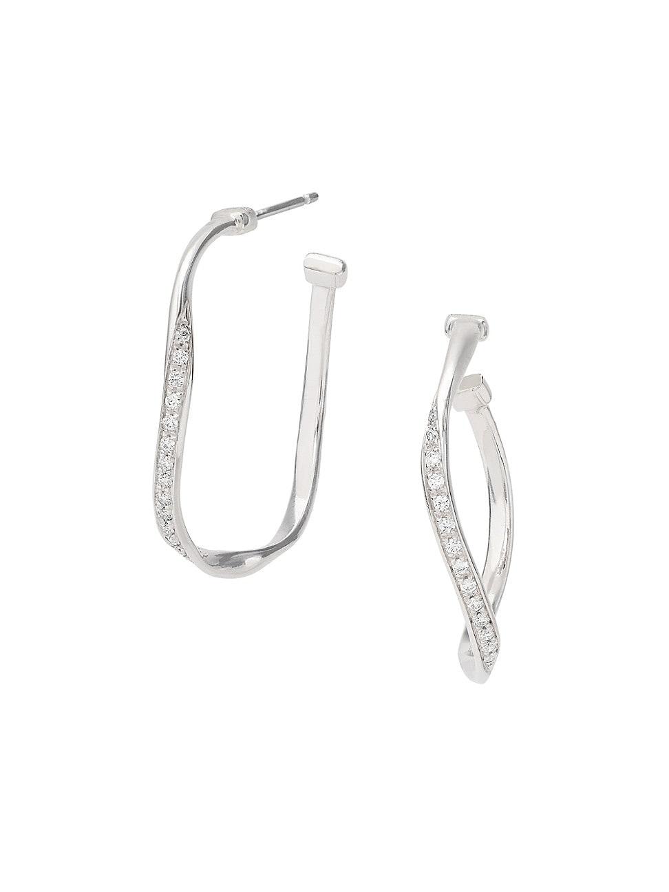 From the Marrakech Collection. Marco Bicegos twisted hoop earrings are handcrafted of polished 18K white gold pav-set with shimmering diamomnds. This chic pair adds a statement-making touch to any ensemble. Diamonds, 0.22 tcw Diamond color grade: F-H Diamond clarity grade: VS1-VVS1 18K white gold Post back Made in Italy SIZE About 1.1L ABOUT THE BRAND Marco Bicego first started learning the art of goldsmithing from his father, and ultimately formed his own brand in 2000 in Trissino, Italy. All crafted in 18K gold, the brand is most known for its handmade pieces in engraved and coil finishes, as well as vibrant semi-precious jewels. Marco has created his brand to be versatile, so one can mix and match collections for daily wear. Fine Jewelry - Marco Bicego A > Marco Bicego > Saks Fifth Avenue > Barneys. Marco Bicego. Color: White Gold.