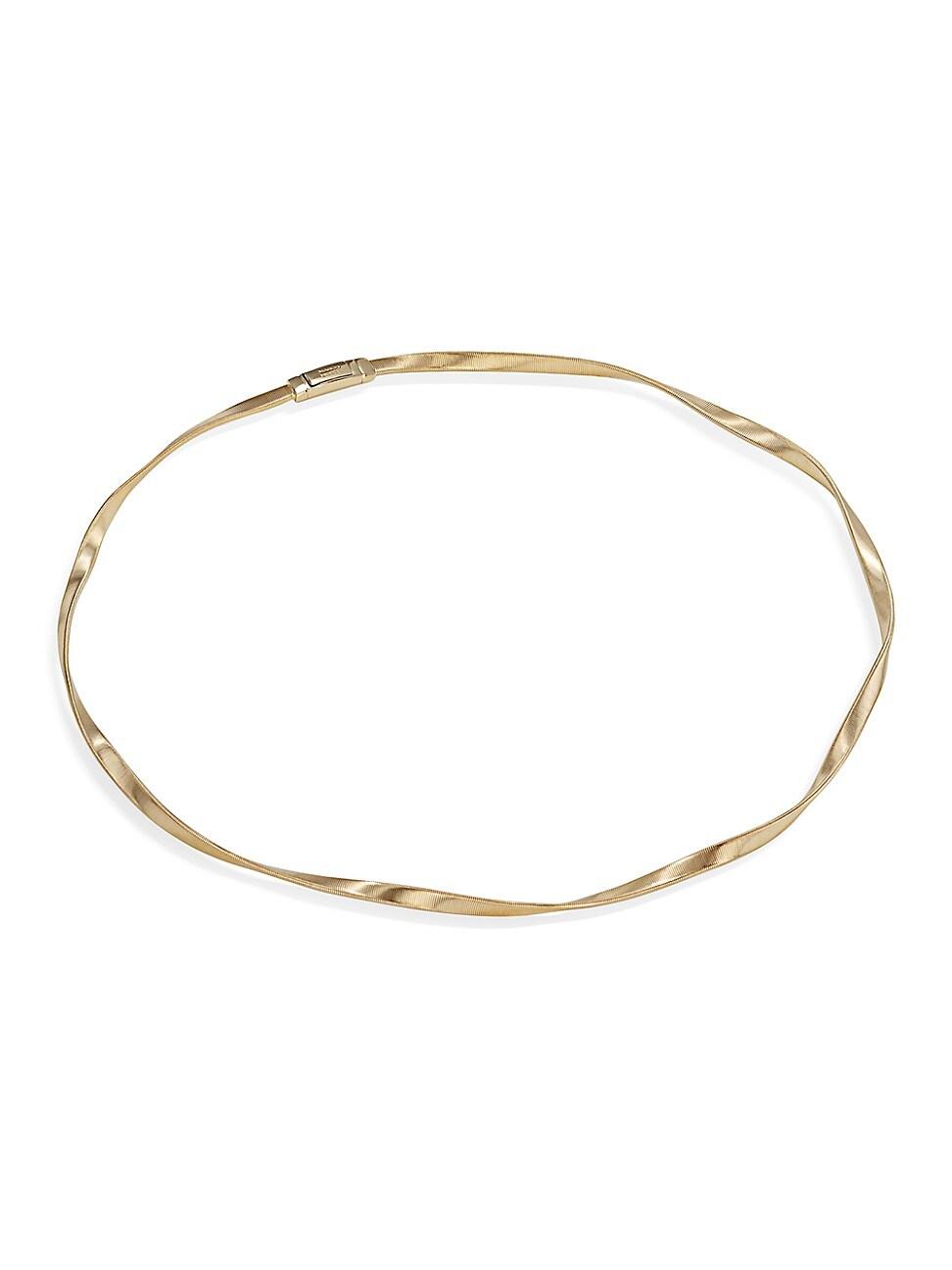 From the Marrakech Collection. Sculpted into a textural collar necklace, this piece exudes elegance. 18K yellow gold Tongue and groove closure Made in Italy SIZE Length, about 16.5 with extender ABOUT THE BRAND Marco Bicego first started learning the art of goldsmithing from his father, and ultimately formed his own brand in 2000 in Trissino, Italy. All crafted in 18K gold, the brand is most known for its handmade pieces in engraved and coil finishes, as well as vibrant semi-precious jewels. Marco has created his brand to be versatile, so one can mix and match collections for daily wear. Fine Jewelry - Marco Bicego C > Marco Bicego > Saks Fifth Avenue > Barneys. Marco Bicego. Color: Gold.