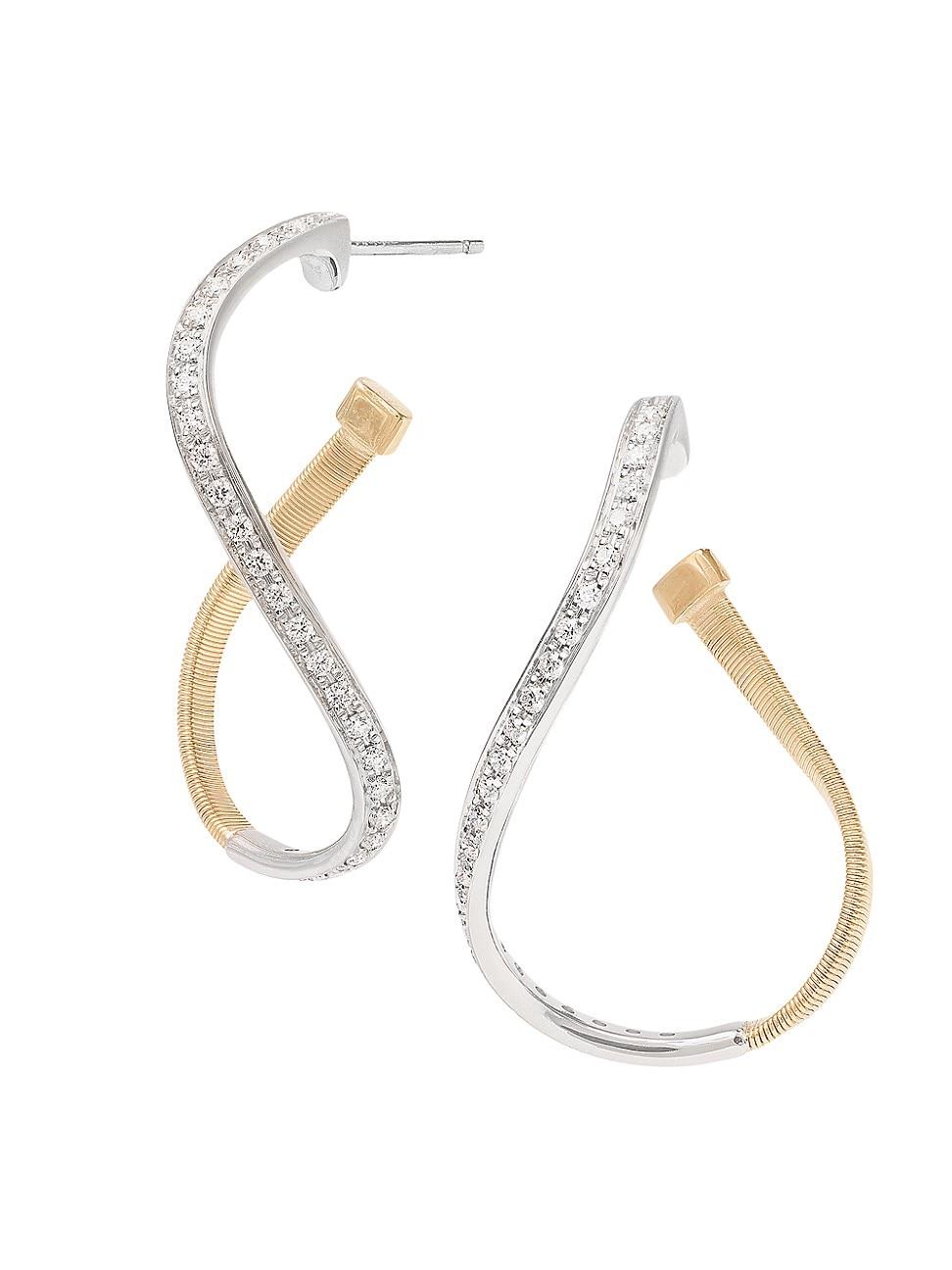 From the Marrakech Collection. Handcrafted of 18K yellow and white gold, Marco Bicegos twist drop earrings shimmer with pav diamonds. Diamonds, 0.38 tcw Diamond color grade: F-H Diamond clarity grade: VS1-VVS1 18K yellow and white gold Post back Made in Italy. Fine Jewelry - Marco Bicego A > Marco Bicego > Saks Fifth Avenue > Barneys. Marco Bicego. Color: Yellow Gold.
