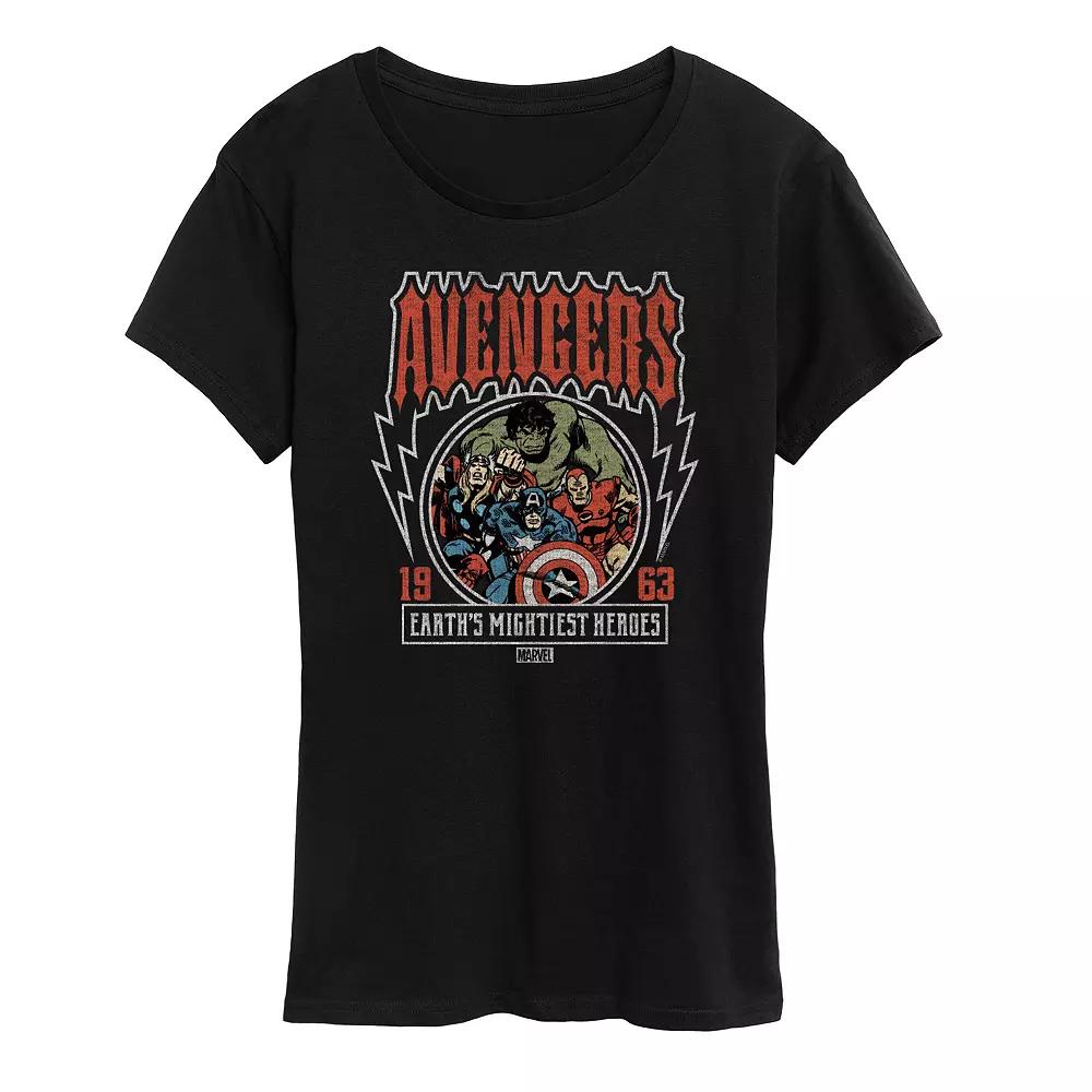 She will love showing off her style with this Women's Marvel Avengers Vintage Band Graphic Tee.FEATURES Short sleeves ScoopneckFABRIC & CARE Light Gray and Heather Colors: Cotton/Polyester ; Solid Colors: Cotton Machine wash Imported Size: Small. Color: Black. Gender: female. Age Group: adult.