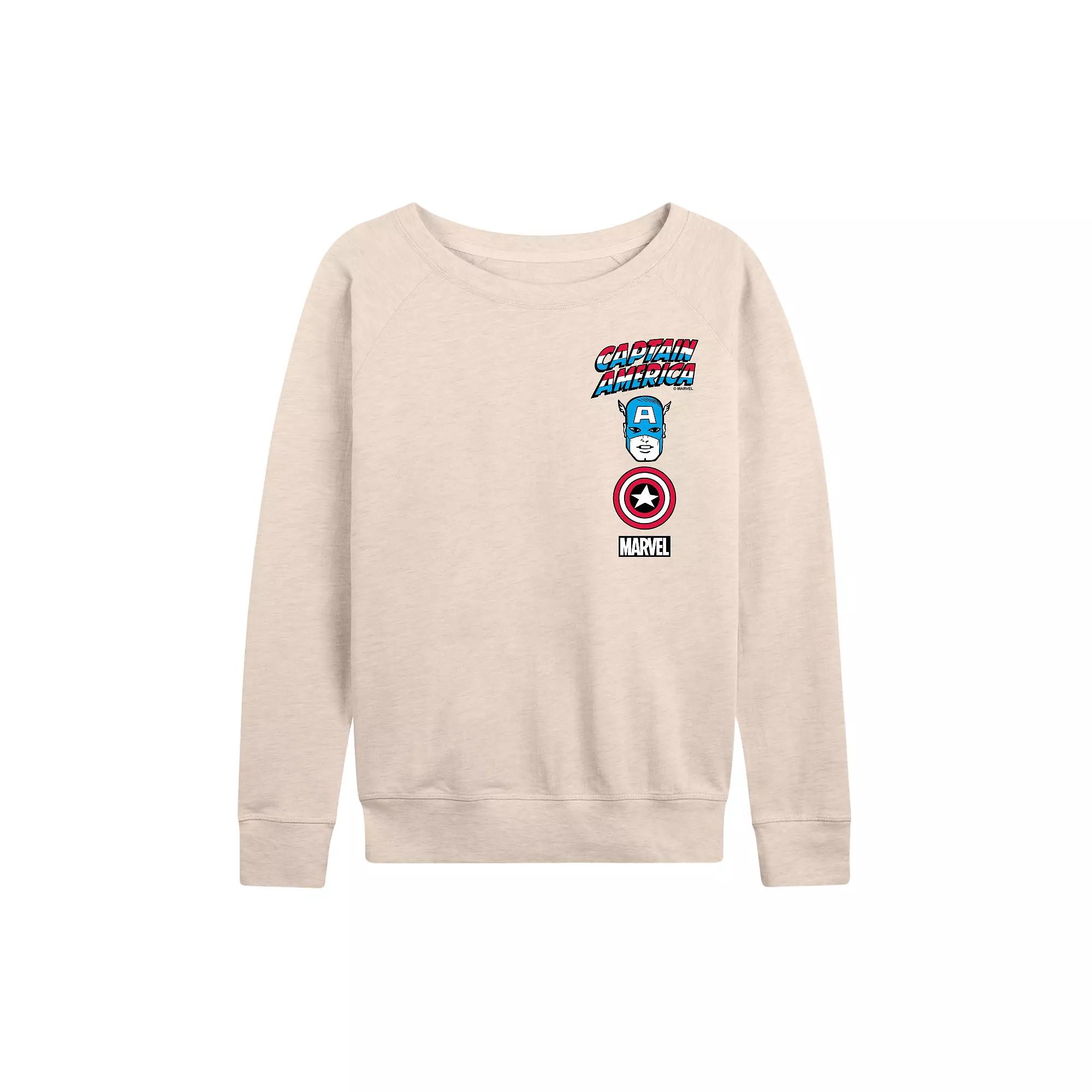 She will love showing off her style with this Women's Marvel Captain America Icons Left Chest French Terry Long Sleeve Tee.FEATURES Long sleeves ScoopneckFABRIC & CARE Cotton/Polyester, French Terry Machine wash Imported Size: X Large. Color: Beige. Gender: female. Age Group: adult.