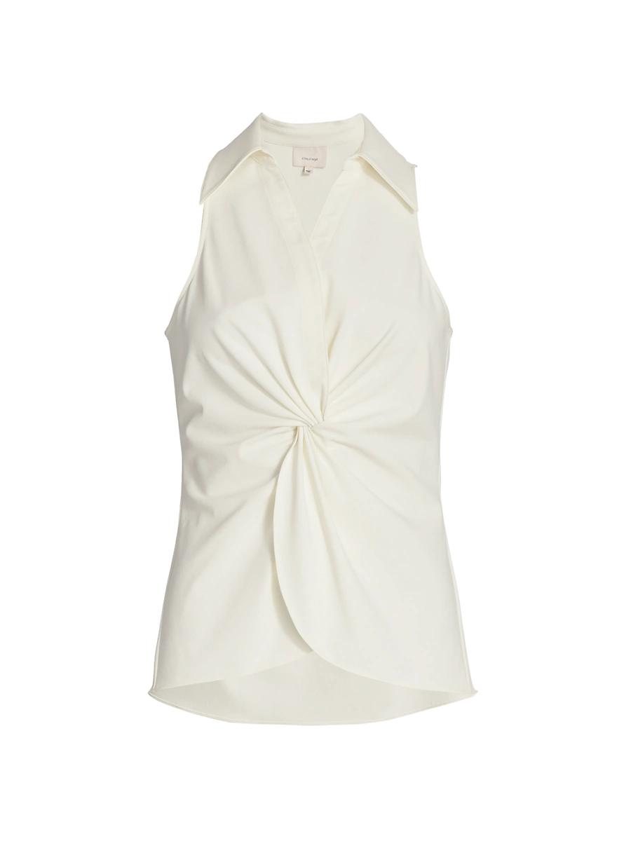 This sleeveless crepe collared blouse has a knotted wrap front that adds polished movement to the piece. Spread collar Sleeveless Pull-on style Knotted front Polyester/polyurethane Dry clean only Imported of Japanese fabric SIZE & FIT About 23 from shoulder to hem Model measurements: 510 tall Model is wearing a US size Small ABOUT THE BRAND Inspired by the radiant, magical hours between 5 and 7 PM-which is what the labels French name translates to-founder Jane Siskin designs sophisticated, feminine pieces for both workweek and the weekend. The designers silhouettes also play with volume and eye-catching trimmings-perfect for cocktails or a special night out. Contemporary Sportswear - Cinq A Sept > Cinq Sept > Saks Fifth Avenue > Barneys. Cinq Sept. Color: Ivory. Size: XXS.