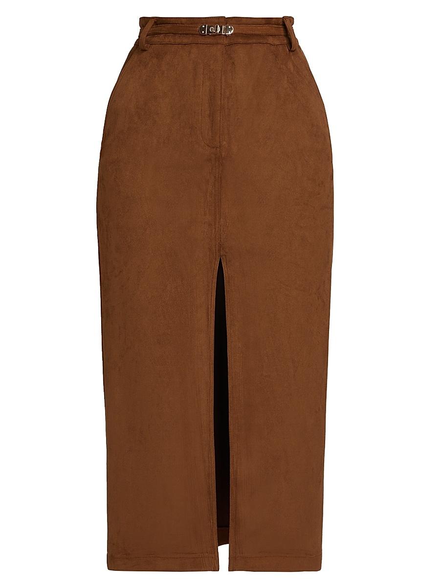 Crafted of faux suede, the Medina fitted skirt from Generation Love is styled with a slit at the front and goldtone belt. Belt loops with belt Side slip pockets Back faux welt pockets Front slit Zip fly, hook-and-eye closure 95% polyester/5% elastane Lining: 95% polyester/5% elastane Dry clean Imported SIZE & FIT Length: about 34 Model measurements: 510 tall Model is wearing US size 4. Contemporary Sportswear - Casual Separates > Generation Love > Saks Fifth Avenue > Barneys. Generation Love. Color: Caramel. Size: 4.