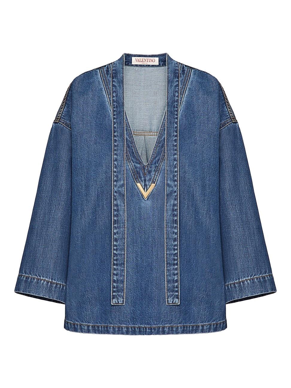 Medium denim caftan. Front V detail Scarf detail on neck Denim (100% Cotton) Unlined Length: 62.5 cm / 24.6 in. from the shoulders in an Italian size 40 Sleeve length: 40 cm / 15.7 in. from the center back in an Italian size 40 The model is 176 cm / 59 tall and wears an Italian size 40 Made in Italy. Lsd Rtw - Valentino Rtw > Valentino Garavani > Saks Fifth Avenue > Barneys. Valentino Garavani. Color: Denim. Size: 4.