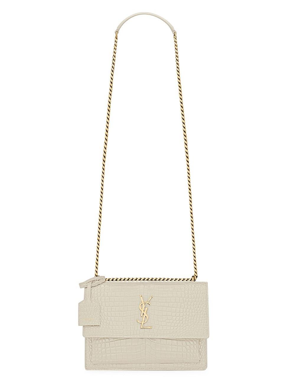 Saint Laurent monogram bag with front flap, featuring side gussets, chain and leather shoulder strap that can be worn crossbody or shortened on the shoulder, a leather-encased key ring and interlocking YSL initials in metal. Dimensions: 22 x 16 x 8 cm / 8.6 x 6.2 x 3.1 inches Strap drop: doubled: 28 cm / 11 inches, simple: 51 cm / 20 inches Gold-toned metal hardware Magnetic snap closure Exterior: One flat pocket at the back Made in Italy. Lsd Handbags - Saint Laurent > Saint Laurent > Saks Fifth Avenue > Barneys. Saint Laurent. Color: Blanc Vintage.