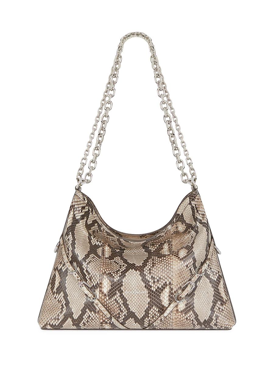 Medium Voyou Chain bag in python. Medium shoulder bag in python leather Voyou line V-shaped slouchy silhouette Sliding metal chain with gradient effect offering shoulder or crossbody carrying Givenchy signature embossed on the front of the bag Givenchy engraved metal buckles Silvery-finish metal details One main compartment and one zipped pocket inside 15.75 in. x 10.63 in. x 2.56 in. Composition: 100% python leather Made in Italy. Lsd Handbags - Givenchy > Givenchy > Saks Fifth Avenue > Barneys. Givenchy. Color: Grey Natural.