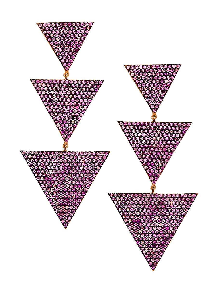 Made of 14K-rose-gold vermeil, Nickho Reys Megan earrings feature three graduated triangle drops encrusted with glittering pink crystals. This pair adds a bold, glamorous touch to any look. Crystals 14K-rose-gold vermeil Post back Imported SIZE Drop, about 2.5. Fashion Jewelry - Trend Jewelry > Nickho Rey > Saks Fifth Avenue > Barneys. Nickho Rey. Color: Hot Pink.