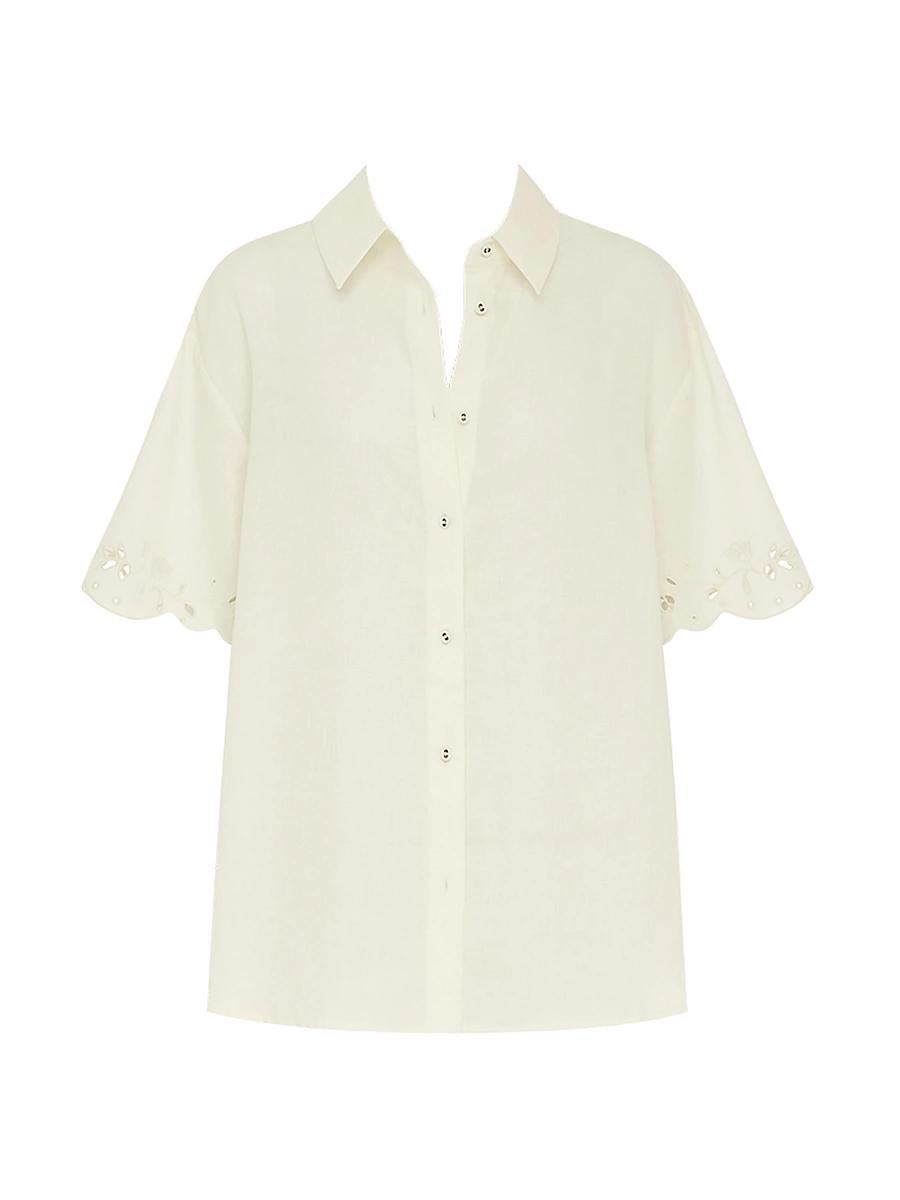 Cut in a relaxed fit, Peonys Memoir linen cover-up shirt showcases an embroidery detail at the sleeve. Made with responsibly sourced linen Spread collar Short sleeves Button-front closure 100% responsibly sourced linen, exclusive of trim Machine wash Imported SIZE & FIT Model measurements: 510 tall Model is wearing a US size Small. Outerwear And Swimwear - Contemporary Swim > Peony > Saks Fifth Avenue > Barneys. Peony. Color: Creme. Size: XS.