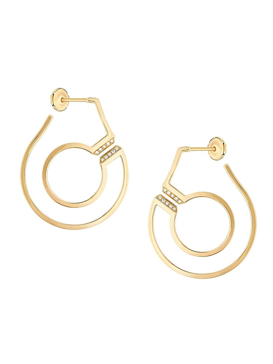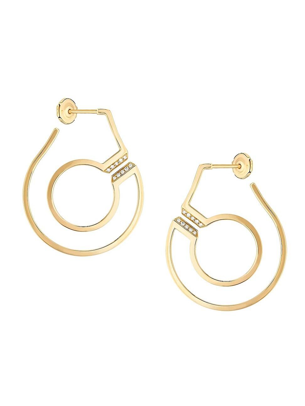 From the Menottes Collection. Structural hoops inspired by a key ring, sculpted into a geometric silhouette with sparkling diamond pav. Diamonds, 0.08 tcw 18K yellow gold Post back Imported SIZE Drop, about 1.33 Width, about 1.08. Fine Jewelry - Designer Jewelry A > Dinh Van > Saks Fifth Avenue > Barneys. Dinh Van. Color: Gold.