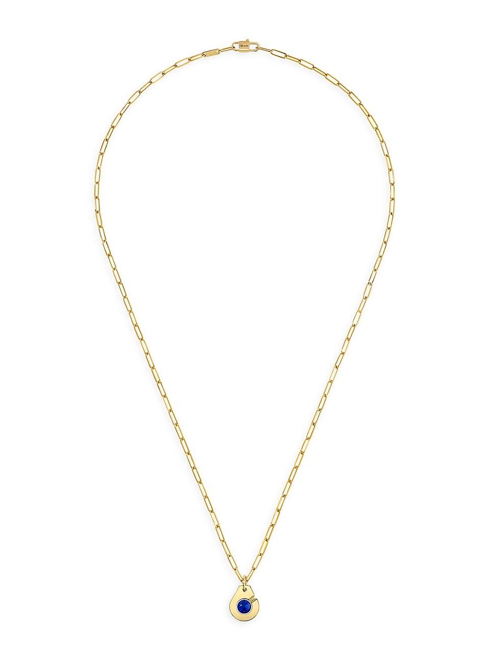 From the Menottes Dinh Van Collection. Made of 18K yellow gold, Dinh Vans paper-clip-chain necklace features the labels iconic handcuff pendant accented with a vibrant gemstone cabochon. Gemstone 18K yellow gold Lobster clasp Made in Italy SIZE Chain: about 17.7L Pendant: about 0.5L. Fine Jewelry - Designer Jewelry A > Dinh Van > Saks Fifth Avenue > Barneys. Dinh Van. Color: Lapis.