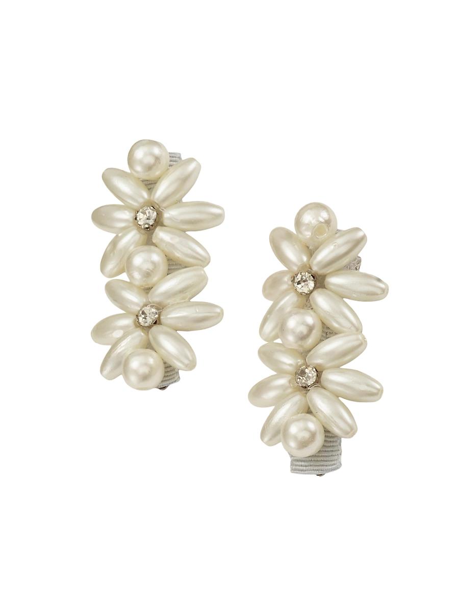 The Mila 2-piece clip set from Lelet NY features delicately clustered faux-pearl embellishments centered with a sparkling crystal for a flower silhouette. Plastic/polyester/stainless steel Spot clean Made in USA. Soft Accessories - Hair Accessories > Lelet Ny > Saks Fifth Avenue > Barneys. Lelet NY. Color: Pearl.