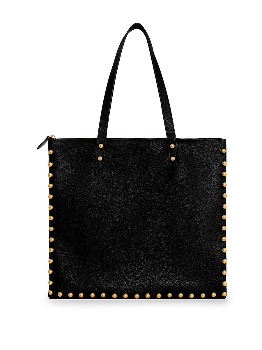 The Milan tote from Rebecca Minkoff is crafted of leather. This bag is adorned with antique brass studs and features. Top handle Interior: one zip pocket Top zip closure Leather Imported SIZE About 16.5W x 15H x 0.25D Weight: about 1.71 lb. Handbags - Contemporary Handbags > Rebecca Minkoff > Saks Fifth Avenue > Barneys. Rebecca Minkoff. Color: Black.