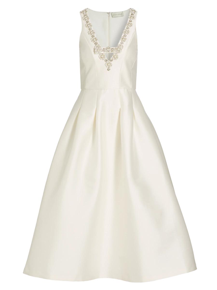 Crafted of stretch mikado, the Millie dress by Sachin & Babi features delicate beaded detailing at the plunging V-neck, embodying the brands commitment to exquisite craftsmanship and timeless elegance. Plunging V-neck Sleeveless Side seam pockets Faux pearl trim Concealed back zip closure 81% polyester/14% nylon/5% elastane Dry clean Imported SIZE & FIT Fit-and-flare silhouette About 53 from shoulder to hem Model measurements: 510 tall Model is wearing a US size 4. Dress Collections - Contemporary Evening > Sachin & Babi > Saks Fifth Avenue > Barneys. Sachin & Babi. Color: Off White. Size: 2.