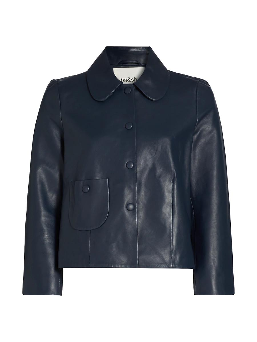 Crafted of luxe leather, ba & shs Milos jacket features structured shoulders, a Peter pan collar, a pleated yoke, and a patch pocket. Peter pan collar Long sleeves Front patch pocket Button-front closure 100% leather Professional leather clean Imported SIZE & FIT About 22 from shoulder to hem Model measurements: 510 tall Model is wearing a US size 4. Contemporary Sportswear - Contemporary Lifestyle > Ba & sh > Saks Fifth Avenue > Barneys. ba & sh. Color: Marine. Size: XS.