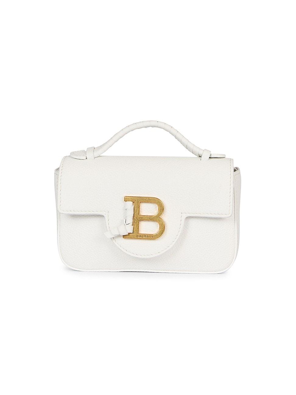 This mini B-Buzz top handle bag from Balmain is crafted of grained leather and designed with an adjustable, removable strap. Top handle Adjustable, removable strap Interior: one slip pocket Leather Polyamide/polyurethane lining Made in Italy SIZE About 7W x 4H x 2D ABOUT THE BRAND In 1945, founder Pierre Balmain made his well-received debut of opulent, ultra-feminine designs. Known today for its iconic blazers, impeccably constructed dresses and signature fragrances, the brand continues its dedication to masterful tailoring and elegance under the helm of Creative Director Olivier Rousteing. Handbags - Advanced Designer Handba > Balmain > Saks Fifth Avenue > Barneys. Balmain. Color: Blanc.