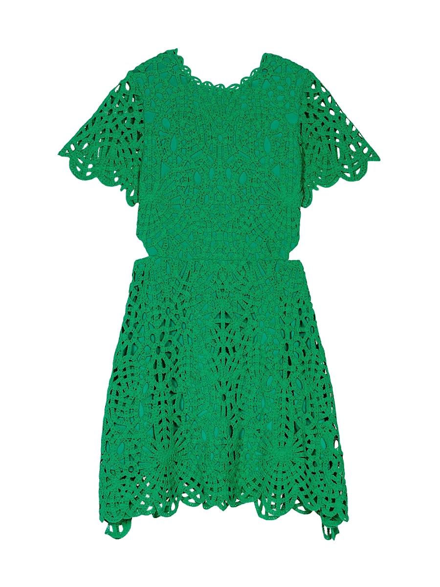 An ode to the new romanticism, the Parisian it-girl of the 70s embraced a whirlwind of freedom and travel. Warm shades bring out the best in lightweight, floaty silhouettes, for a cool, feminine everyday look. Made from crochet, this short dress features an interplay of textured, patterned guipure and scalloped edges. Cutaways on the hips accentuate the waist, while a tied halterneck adds a bold touch. Elevate your look with wedge sandals for a chic, lightweight summer outfit. 125ROZIMALO Crochet short dress Pattern guipure Scalloped edges Cut-aways on the hips V-shaped halter neck with laces Zip fastening Flared skirt Lined Main material: 100% cotton Lining: 95% polyester, 5% elastane Braid: 100% cotton Tie: 100% cotton Bias binding: 100% viscose Model measurements: 511 Model is wearing a size 4 Imported. Lsd Rtw - Maje > Maje > Saks Fifth Avenue > Barneys. Maje. Color: Black. Size: 8.