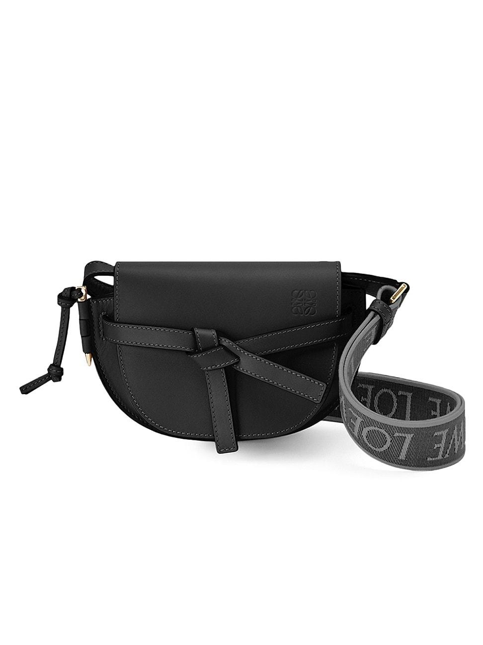 The Gate displays the brands unrivaled leather craftsmanship with a saddle-stitched knotted leather strap and a side-latched metal pin that gives the bag its name. Adjustable logo strap Fold-in flap closure Goldtone hardware Interior open compartment Leather/cotton/polyester Made in Spain SIZE 8.25W x 5H x 3.75D. Handbags - Loewe Handbags > Loewe > Saks Fifth Avenue > Barneys. LOEWE. Color: Butter.