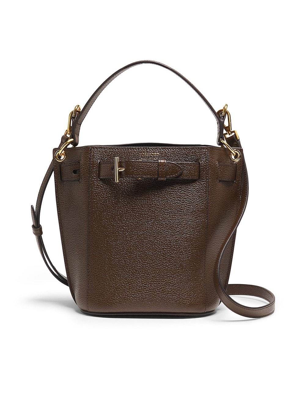 From the Audrey Collection. TOM FORDs mini bucket bag exemplifies the designers sleek, tailored aesthetic. This bag features a functional leather belt to secure the bucket, an adjustable and removable leather shoulder strap, and a convenient top handle. Top handle Adjustable, removable shoulder strap Interior: one slip pocket Leather Made in Italy SIZE About 6.7W x 7.9H x 4.7D Top handle: about 4.7drop Adjustable, removable shoulder strap: about 21 drop Weight: about 1.1 lb ABOUT THE BRAND After 10 years of serving as the Creative Director for several international luxury fashion houses, Tom Ford launched his own line of optical frames, sunglasses and beauty in 2005. The following year he debuted menswear, and in 2010, womens ready-to-wear. His sleek, tailored aesthetic has since catapulted him to mega-brand status. Handbags - Italian Designers > Tom Ford > Saks Fifth Avenue > Barneys. TOM FORD. Color: Dark Khaki.