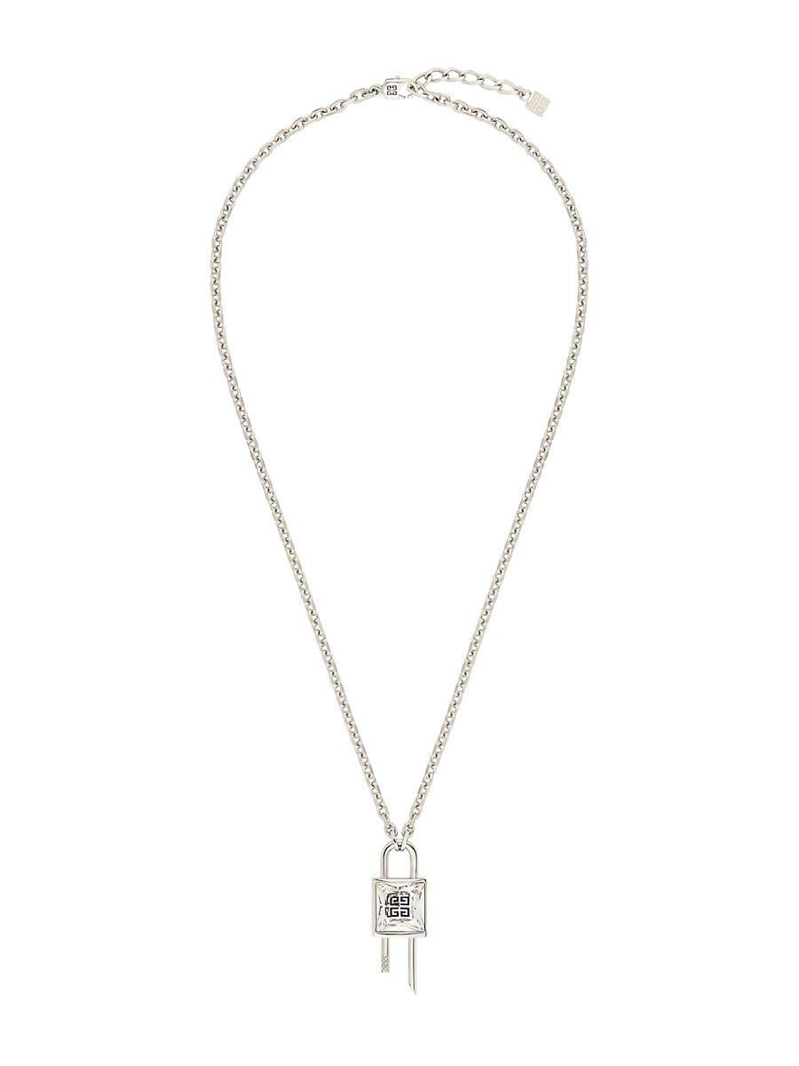 Mini Lock necklace in metal with crystal. Necklace with silvery-finish metal links Lock line Mini removable 4G padlock pendant in silvery-finish polished metal and Swarovski crystal Black 4G emblem engraved inside the crystal GIVENCHY engraved clasp in silvery-finish metal Adjustable length from 17.7 to 19.1 in Matching earrings, bracelet and ring sold separately Composition: 100% brass, Secondary material: 100% crystals Made In Italy. Lsd Rtw - Givenchy Rtw > Givenchy > Saks Fifth Avenue > Barneys. Givenchy. Color: Silvery.