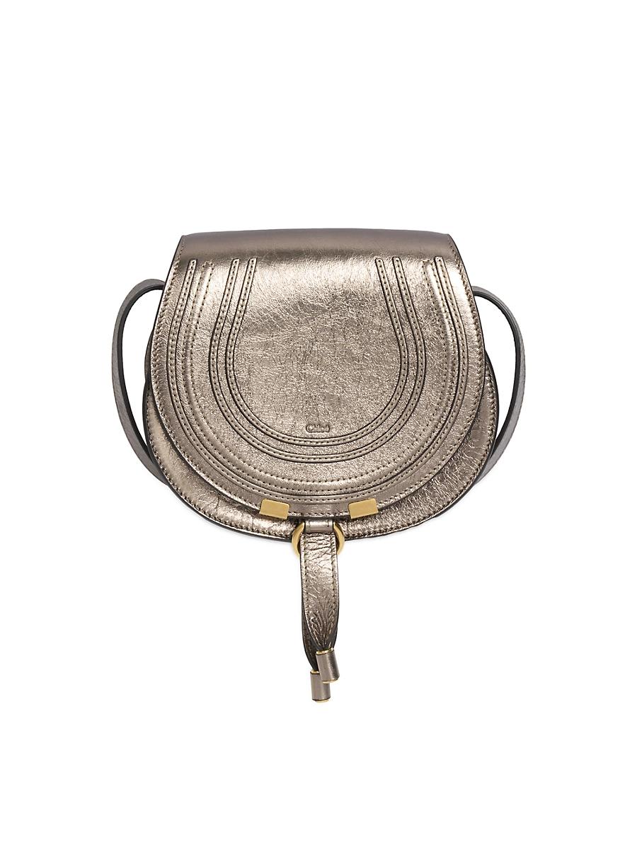 Crafted of metallic leather, Chlos Mini Marcie saddle bag exemplifies the brands commitment to high-quality materials and Italian craftsmanship. This styles sleek silhouette adds a sophisticated touch to any ensemble. Adjustable shoulder strap Flap closure Leather Made in Italy ABOUT THE BRAND In 1952, founder Gaby Aghion established Chlo as an alternative to couture, and to appeal to the aspirations and empowerment of women. The label is now led by Creative Director Gabriela Hearst, who furthers its signature aesthetic of cool, French-girl style. Handbags - Chloe Handbags > Chlo > Saks Fifth Avenue > Barneys. Chlo. Color: Shiny Grey.