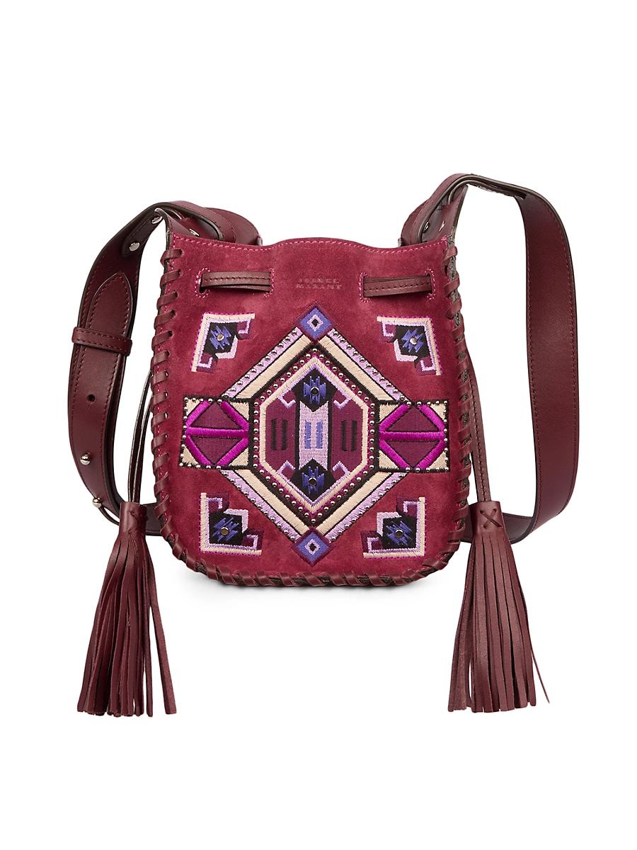 Isabel Marants Mini Silao shoulder bag is crafted of sumptuous suede with colorful embroidery, offering a touch of understated elegance. This compact accessory exemplifies the brands commitment to quality and style. Adjustable shoulder strap Drawstring closure Suede/leather Lining: cotton Imported SIZE About 8.4W x 8H x 0.39D ABOUT THE BRAND Founded in 1922 in St. Gallen, Switzerland, the name Akris was derived from founder Alice-Kriemler Schochs initials. The entrepreneurial designer first started designing dotted aprons with intricate embroidery and soft cotton, which quickly grew into a full line of ready-to-wear. Almost 100 years later, the brand is now helmed by her grandsons. Creative Director Albert Kriemler continues to pay homage to his grandmother through polka-dot lined clothing, luxe fabrications and modern design-which now include sleek accessories like the cult-favorite AI trapezoidal handbag. Handbags - Advanced Designer Handba > Isabel Marant > Saks Fifth Avenue > Barneys. Isabel Marant. Color: Raspberry.