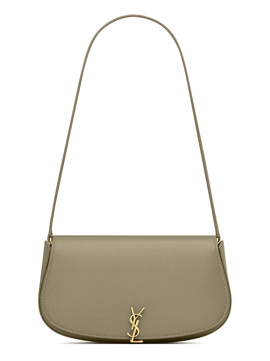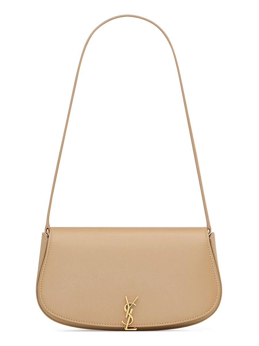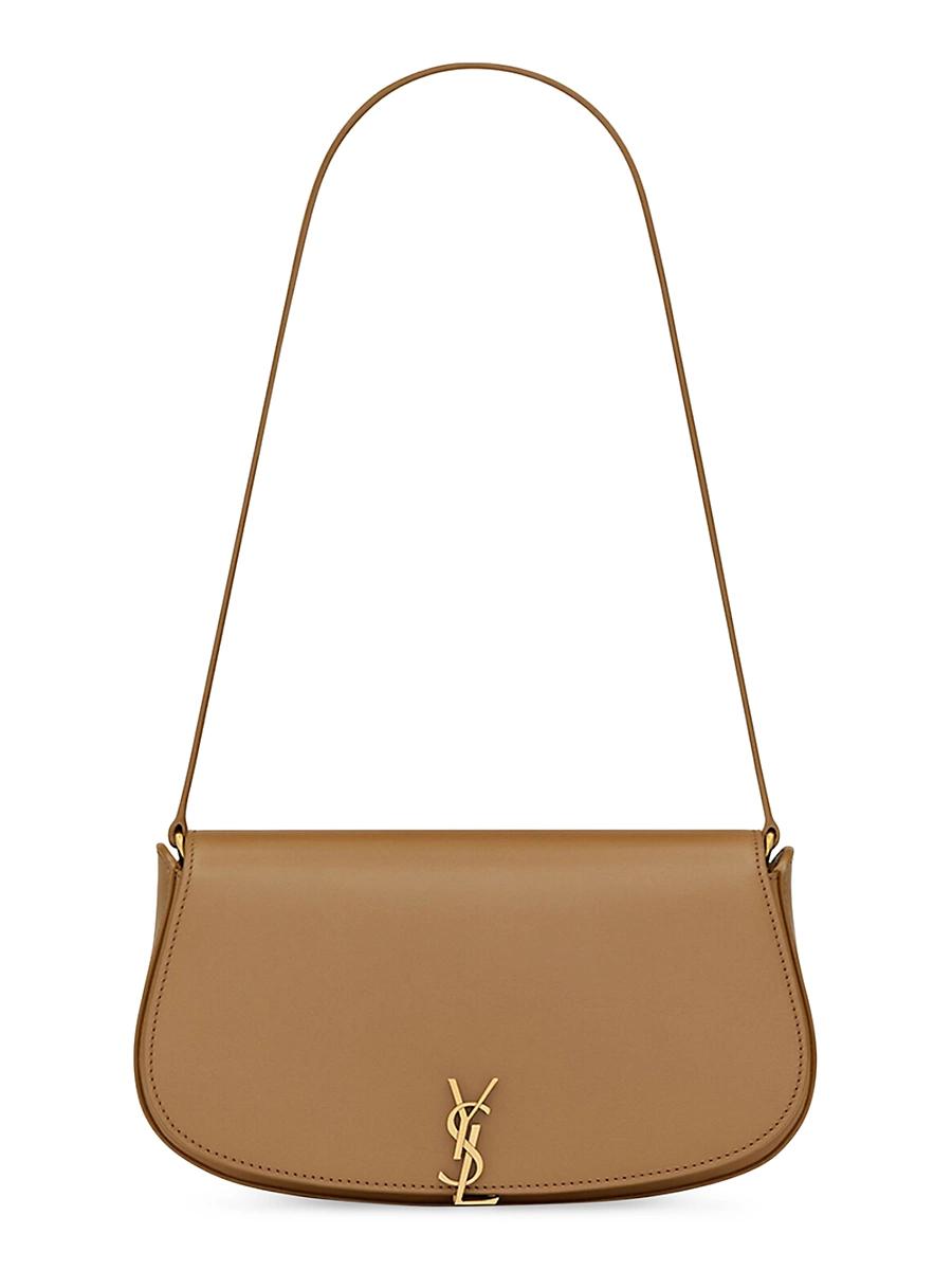 Mini half-moon shoulder bag with front flap and pivoting Cassandre closure. Leather lining Bronze-toned hardware Pivoting Cassandre closure One flat pocket Dimensions: 13.5 x 17.5 x 5 cm / 5.3 x 6.9 x 2 Strap drop: 24 cm / 9.4 Made in Italy. Lsd Handbags - Saint Laurent > Saint Laurent > Saks Fifth Avenue > Barneys. Saint Laurent. Color: Dark Cork.
