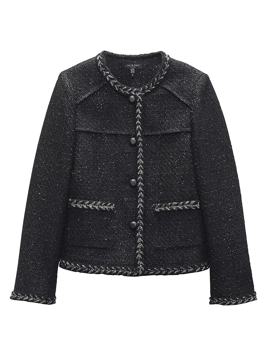 This Mirabelle jacket from rag & bone is crafted of tweed accented with metallic braided trim and side patch pockets. Crewneck Long sleeves Side patch pockets Button-front closure 72% polyester/25% wool/3% nylon Lining: 51% viscose/49% polyester Dry clean Imported SIZE & FIT About 23.75 from shoulder to hem Model measurements: 510 tall Model is wearing a US size Small ABOUT THE BRAND In 2002, rag & bone founder Marcus Wainwright combined his British heritage with a downtown-New York aesthetic to set the tone for the label. At the heart of the edgy-yet-laid-back brand is its focus on quality craftsmanship and attention to detail. The epitome of cool, off-duty style, its no wonder the signature second-skin denim is favored by many. Contemporary Sportswear - Rag And Bone > Rag & Bone > Saks Fifth Avenue > Barneys. rag & bone. Color: Black. Size: XL.