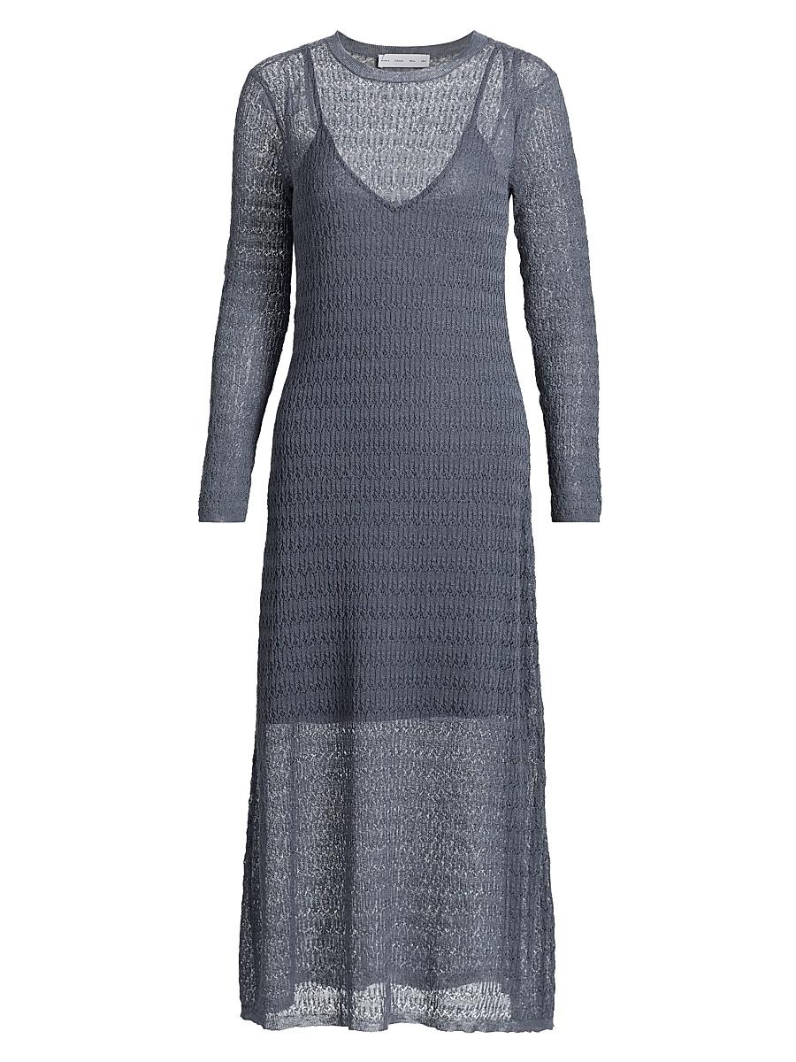 Crocheted from fine linen yarn, the Miriam midi-dress from Proenza Schouler White Label features a sheer design with a V-neck slip underneath. Crewneck Long sleeves Pulls over V-neck slip 100% linen Dry clean Imported SIZE & FIT Model measurements: 510 tall Model is wearing a US size Small ABOUT THE BRAND Designers Jack McCollough and Lazaro Hernandez collaborated on their senior thesis at NYCs Parsons School of Design in 2002, which led to the official launch of Proenza Schouler-an homage to
