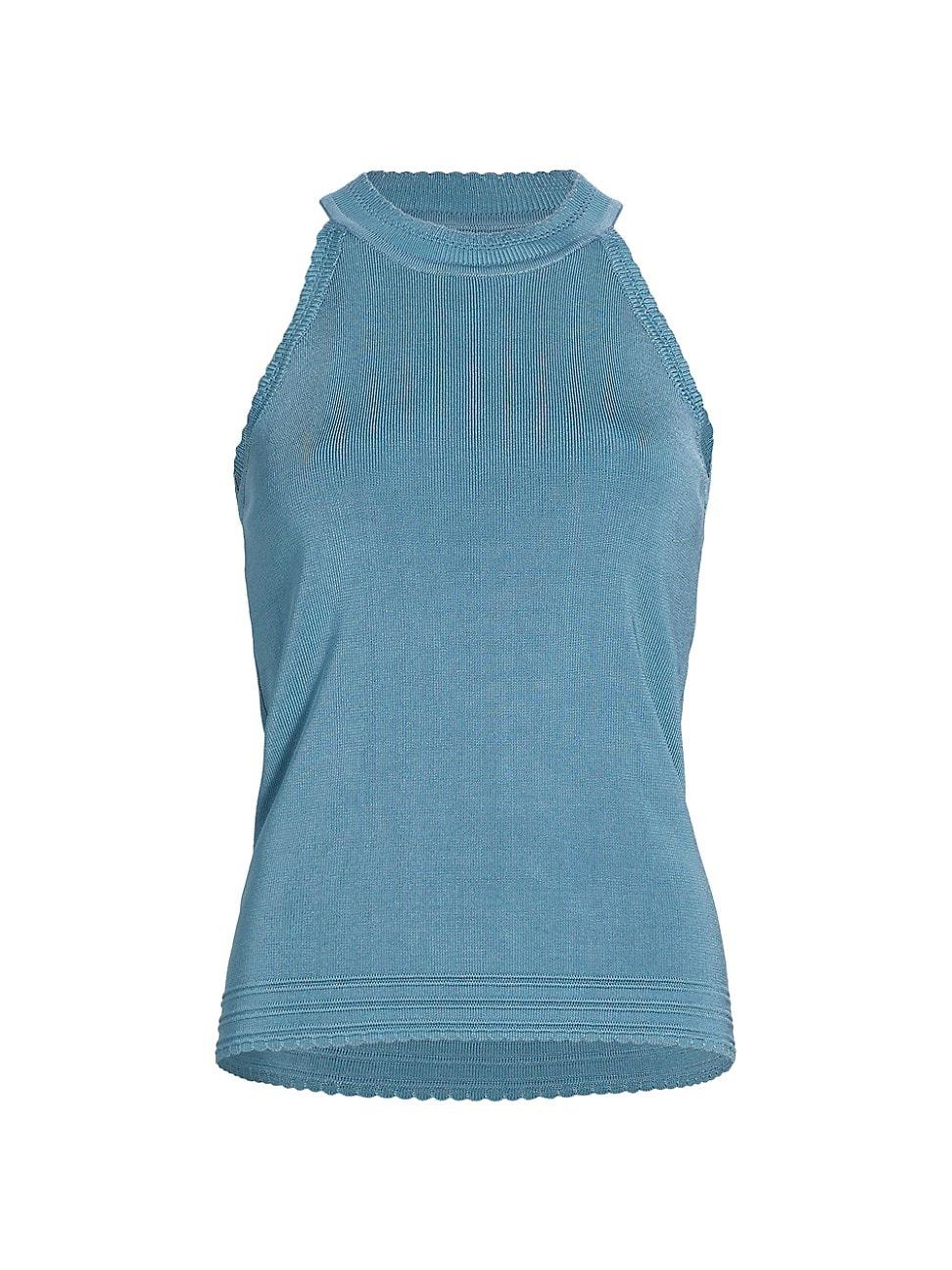 Elie Taharis Mirren knit top features a halter neck and delicate pointelle detailing. Halter neck Sleeveless Pulls over 80% viscose/20% nylon Hand wash Imported SIZE & FIT About 23 from shoulder to hem Model measurements: 510 tall Model is wearing a US size Small. Modern Collections - Elie Tahari > Elie Tahari > Saks Fifth Avenue > Barneys. Elie Tahari. Color: Blue Breeze. Size: XS.