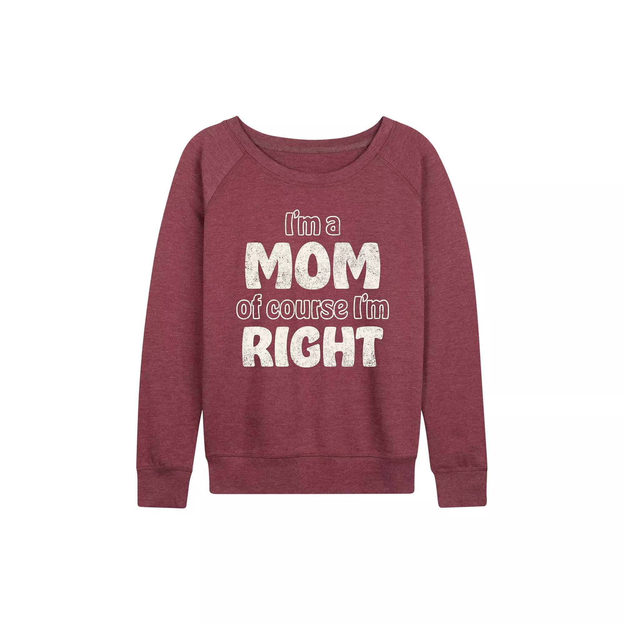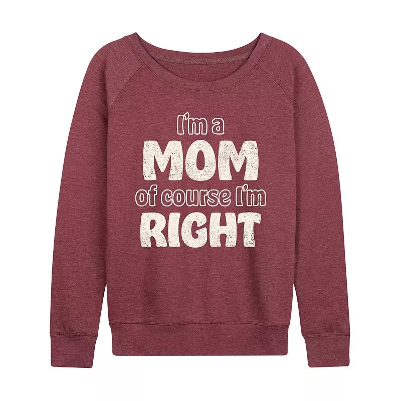She will love showing off her style with this Women's Mom Of Course I'm Right French Terry Long Sleeve Tee.FEATURES Long sleeves ScoopneckFABRIC & CARE Cotton/Polyester, French Terry Machine wash Imported Size: X Large. Color: Heather Dark Red. Gender: female. Age Group: adult.