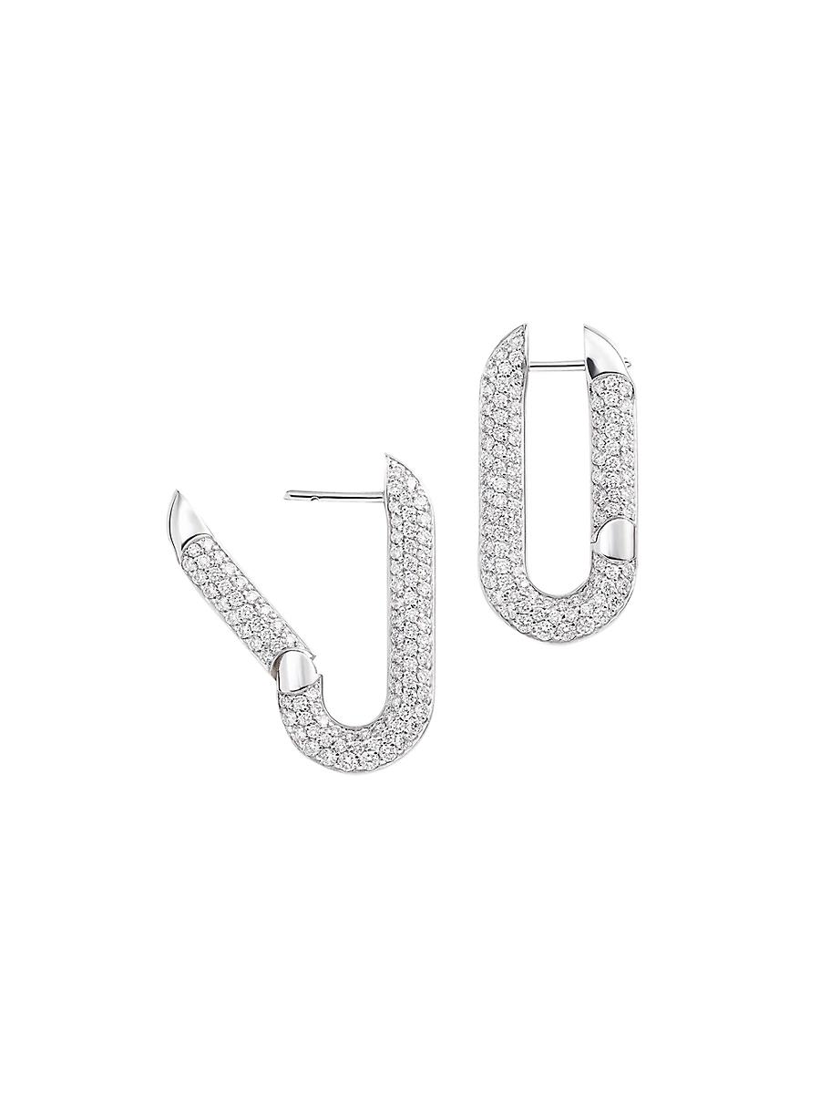 From the Mon Jeu Collection. Vherniers 18K-white-gold oval hoop earrings glitter with pav diamonds. Made in Italy, this radiant pair captures the acclaimed labels chic, contemporary aesthetic. Diamonds, 1.01 tcw Diamond color: F Diamond clarity: VVS 18K white gold Hinged snap clasp Made in Italy SIZE Drop, about 0.95 Width, about 0.5. Fine Jewelry - Designer Jewelry A > Vhernier > Saks Fifth Avenue > Barneys. Vhernier. Color: White.